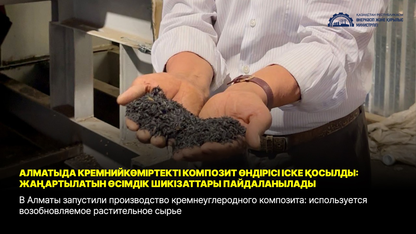 Алматыда көміртекті кремний композитін шығаратын жаңа өндіріс орны іске қосылды. Жоба жаңартылатын өсімдік шикізаттарын пайдалану және авторлардың оны өңдеуге деген көзқарастарымен бірегей. Қондырғы қайталама ресурстар – күріш өңдеу қалдықтарымен жұмыс істейді.