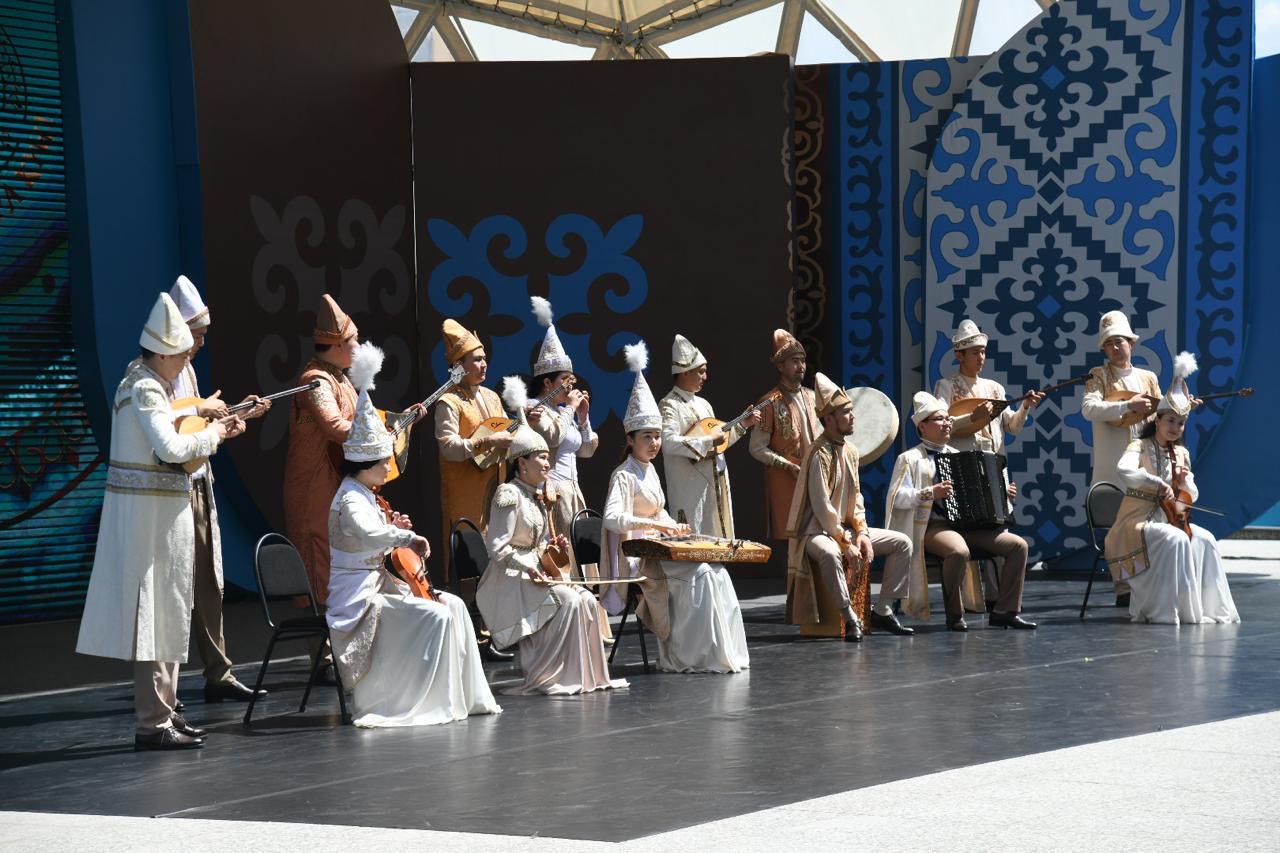 Амфитеатр сахнасындағы мерекелік концертте аңызға айналған күйлер мен халық әндері шырқалды.
