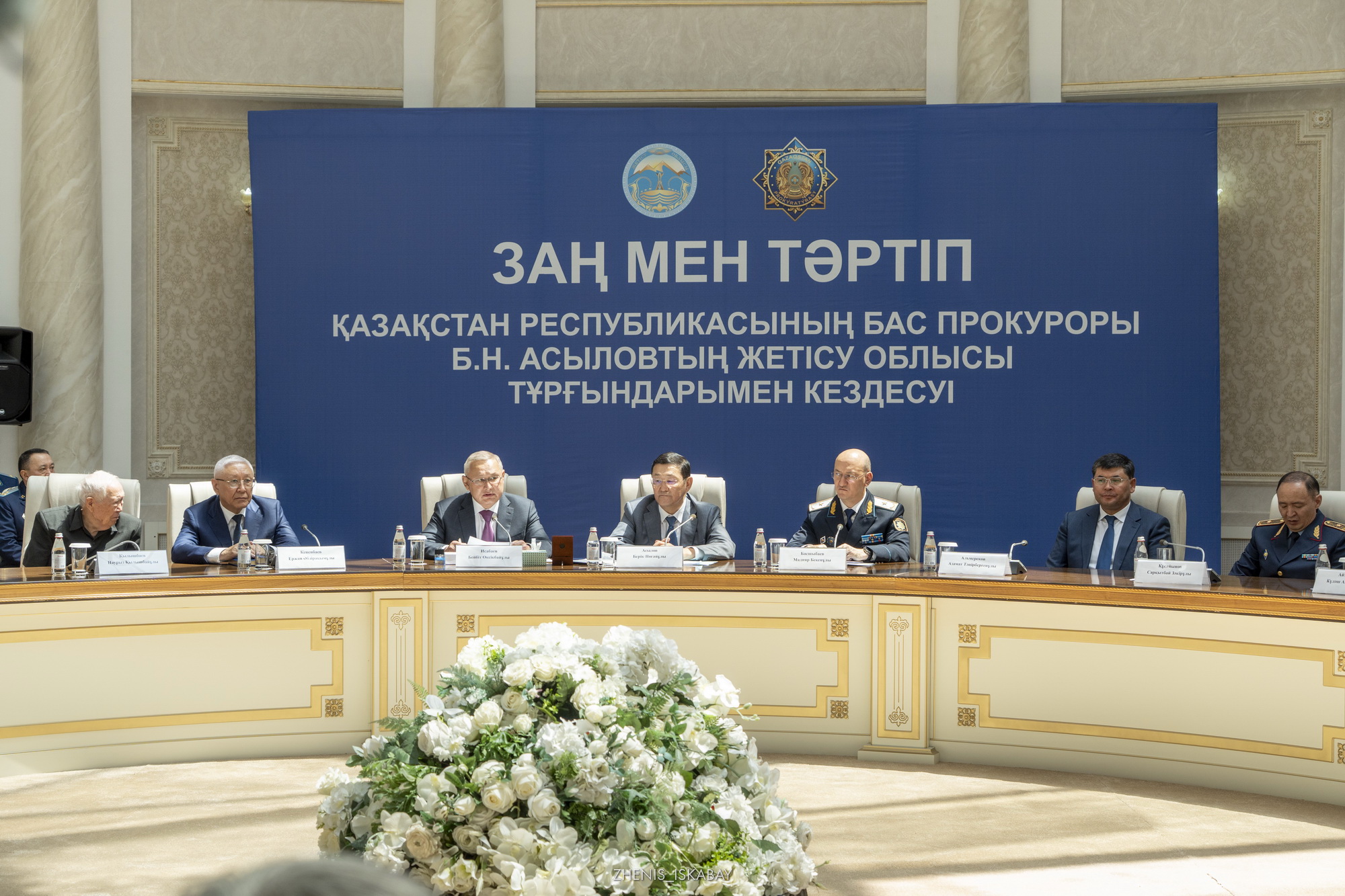 Бүгін ҚР Бас прокуроры Берік Асылов Талдықорғандағы Салтанат сарайында өңір тұрғындарымен және құқық қорғау органдары өкілдерімен кездесу өткізді. Кездесуге қоғам қайраткерлері, үкіметтік емес ұйым мүшелері, белсенді жастар да қатысты. Жиынды Жетісу облысының әкімі Бейбіт Исабаев жүргізді, – деп хабарлайды Жетісу облысы әкімінің баспасөз қызметі.