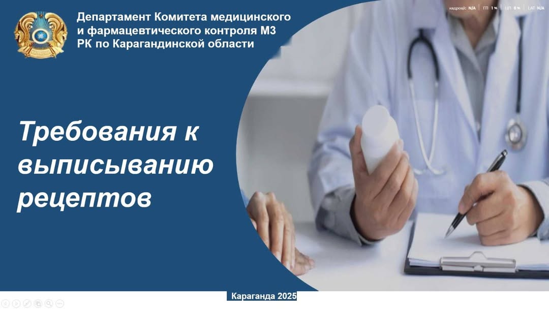 Медициналық және фармацевтикалық бақылау комитетінің Қарағанды облысы бойынша департаменті Қарағанды облысының дәрілік заттар айналымы саласындағы субъектілердің басшыларымен дәрілік заттарды , оның ішінде есірткі, психотроптық және күшті әсер ететін дәрілік заттарды рецепт бойынша босату қағидаларына қатысты онлайн кеңес өткізді.