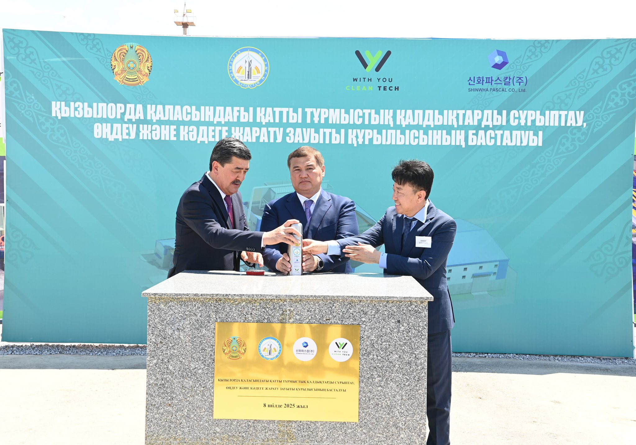 Бүгін Қызылорда қаласында “With You Kyzylorda” ЖШС қатты тұрмыстық қалдықтарды сұрыптау, өңдеу және кәдеге жарату зауытының капсуласын салу рәсімі өтті. Оған ҚР Парламенті Мәжілісінің депутаттары Қарақат Абден, Мархабат Жайымбетов, Мұрат Әбенов, Мұрат Ергешбаев, ҚР Экология және табиғи ресурстар министрі Ерлан Нысанбаев және зиялы қауым өкілдері қатысты.