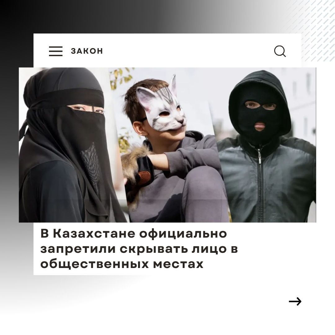 “Қазақстан Республикасы заңдарының, қызметтік (лауазымдық, еңбек) міндеттерінің талаптарын орындау үшін, медициналық мақсатта, азаматтық қорғау үшін, ауа райы жағдайларында, сондай-ақ спорттық, спорттық-бұқаралық іс-шараларға тікелей қатысатын адамдар үшін қажет болған жағдайларды қоспағанда, бетті тануға кедергі келтіретін киім заттарын қоғамдық орындарда киюге тыйым салынады және мәдени-бұқаралық іс – шараларда”, – делінген заң мәтінінде.