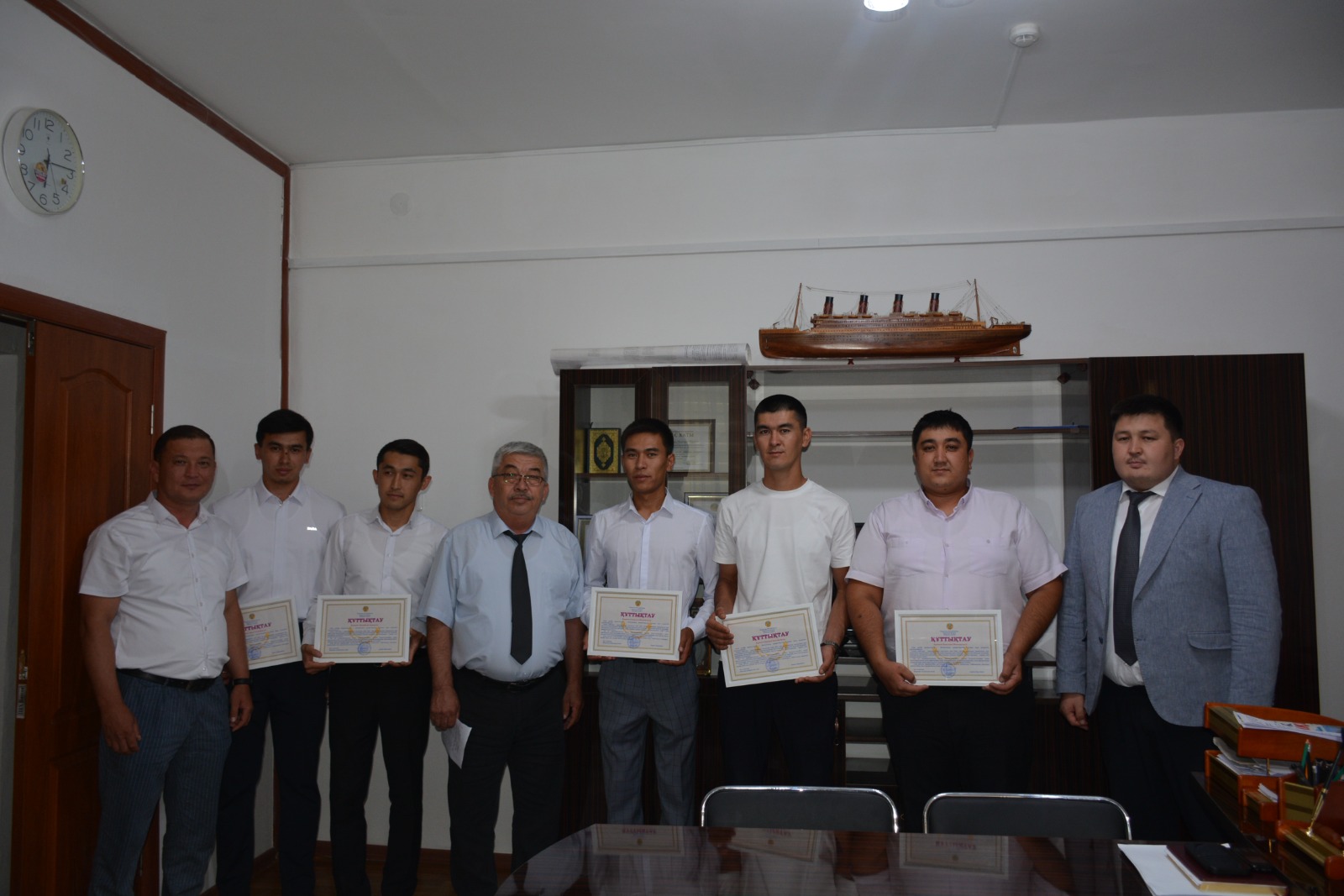 Атап айтқанда, Айтмұратов Кәрім Орынбасарұлы, Мыңбатыров Бақытжан, Жумадиллаев Аскербек Адихамұлы, Бәкір Бақытжан Оразбекұлы, Өтепберген Бексұлтан Әсемұлы, Елкелді Айдана Нұрланқызы, Жарылқап Абылайхан Асқарұлы, Әбдіназар Ерқанат Құнанбайұлы, Ағман Сапарғали Махамбетұлы және Абдукаримов Айдос Ұлықбекұлы аудан әкімінің “Алғыс хатымен” марапатталды.