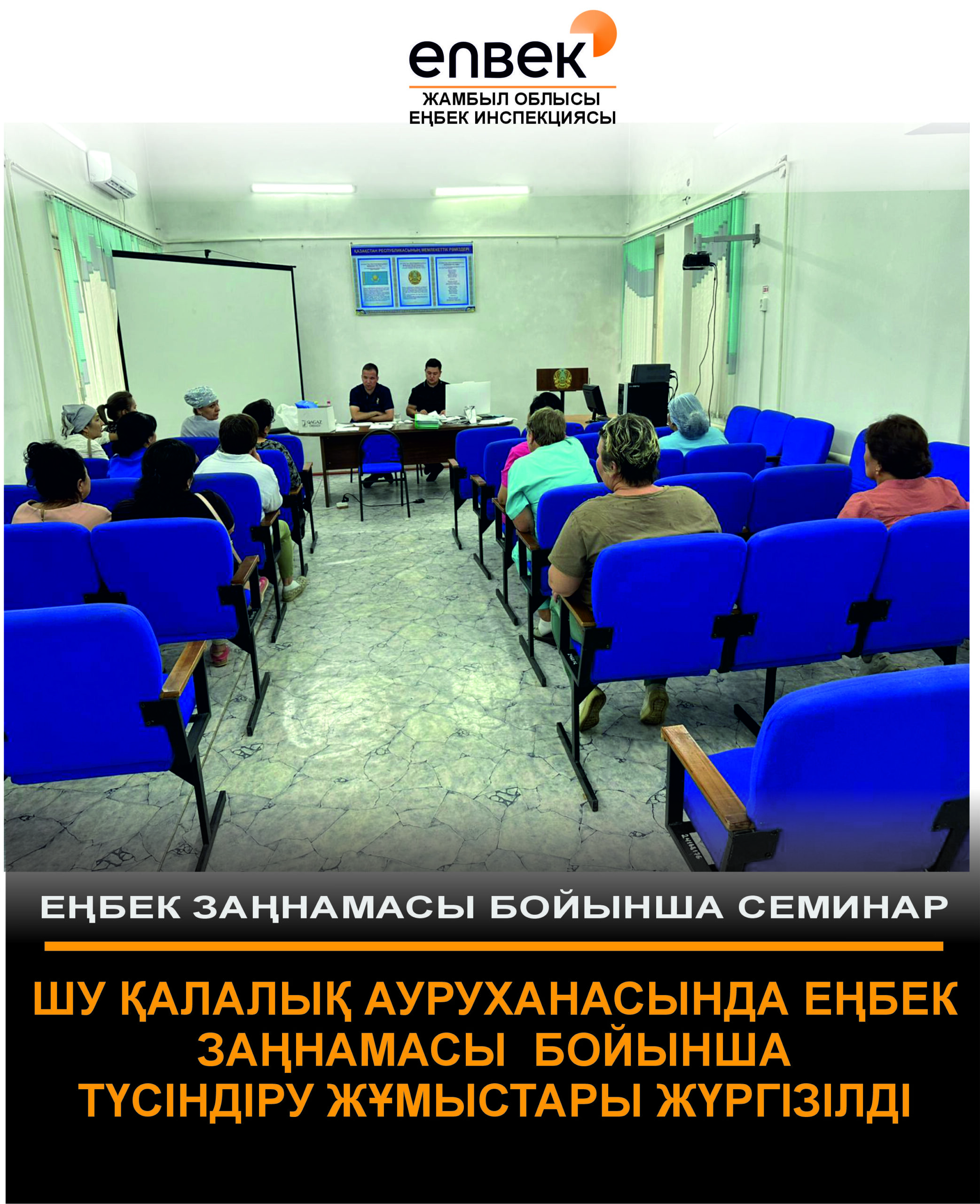 Жамбыл облысы әкімдігінің денсаулық сақтау басқармасы “Шу қалалық ауруханасы” ШЖҚ МКК-де мемлекеттік еңбек инспекторлары Н. Досмаханов пен Ж. Бекмұрза еңбек заңнамасының талаптарын түсіндірді.