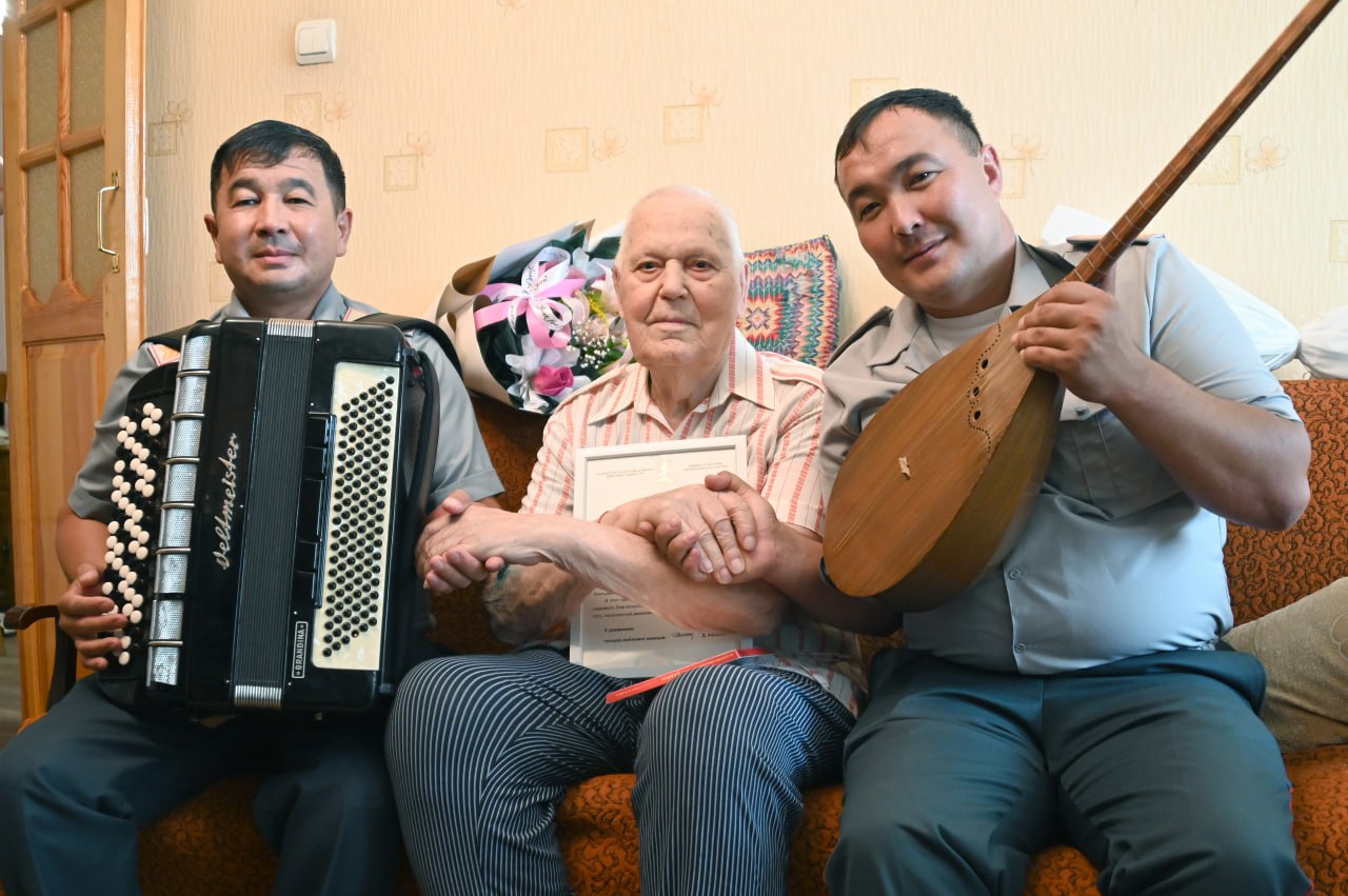 «Оңтүстік» өңірлік қолбасшылығының әскери қызметшілері мен жергілікті әскери басқару органдарының өкілдері Ұлы Отан және кеңес-жапон соғыстарына қатысқан Иван Федорович Макеевті туған күнімен құттықтады.
