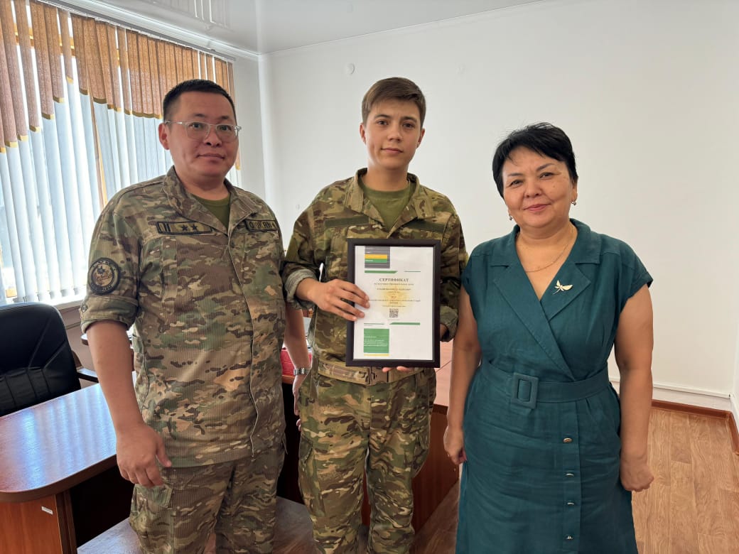 Грант иегері атанған Столяров Кирилл мен Қалдыбек Нұрдәулетті аудан әкімінің орынбасары Айтолқын Әбдібекова мен Қаратау қалалық қорғаныс істері жөніндегі біріктірілген бөлімнің бастығы, полковник Т.Мұстафаев арнайы қабылдап, сертификаттарын табыс етті.