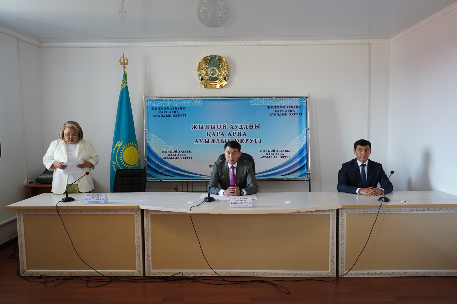 Жиналыста Жылыой аудандық аумақтық сайлау комиссиясының төрағасы З.Калмуханова Қара Арна ауылдық округінің әкімі болып сайланған Сағынов Ербол Нұртайұлына әкім куәлігін тапсырды.