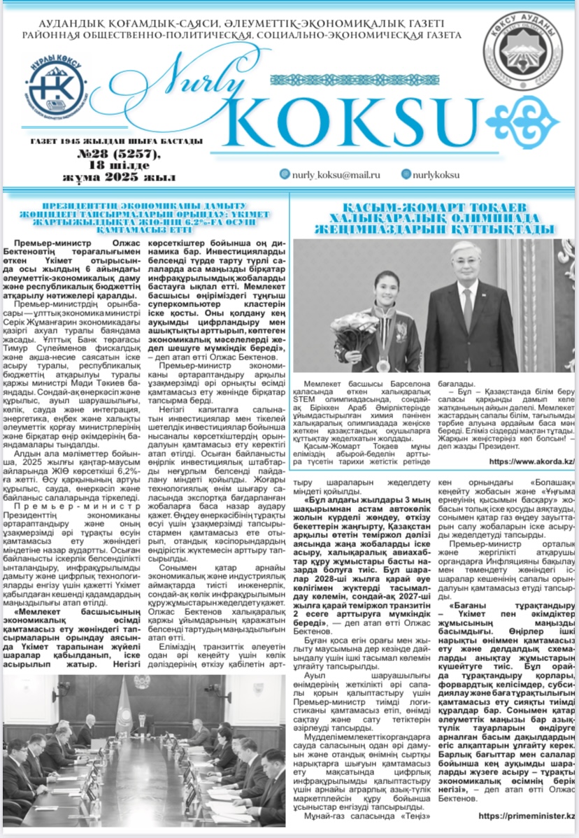 18.07.2025 жылы аудандық «Нұрлы Көксу» газетінің №28(5257) санында Жетісу облысы Әділет департаментінің сот орындаушыларының қызметін реттеу және бақылау бөлімінің басшысы А.С. Абдикаримованың «Тіл – халықтың жаны» мақаласы жарияланды.