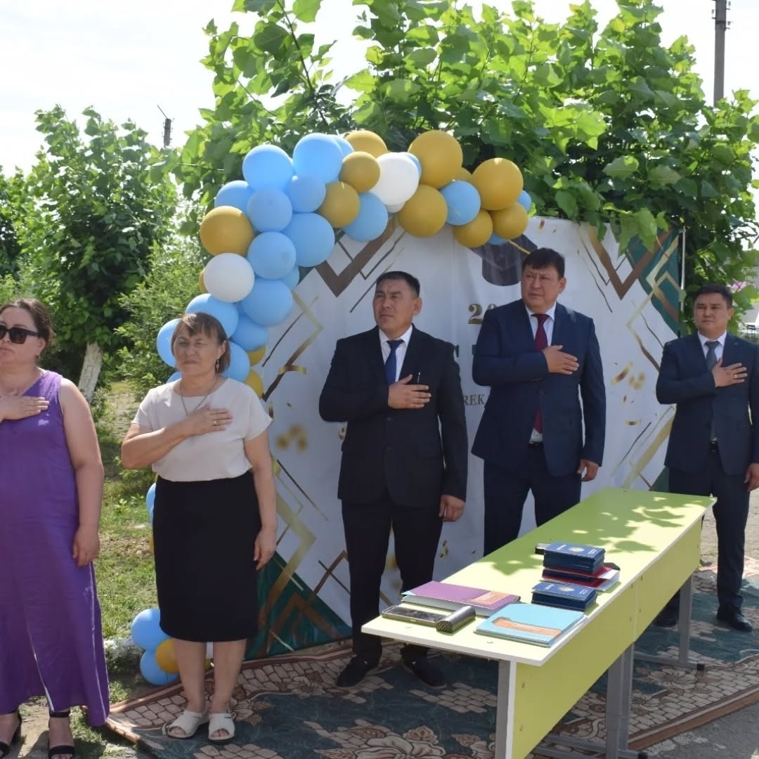 Мектеп ауласына жиналған жұрттың ыстық ықыласы мен қошеметімен 2025 жылғы түлектер салтанатты түрде ортаға шықты. Оларды жылы лебіздер мен шынайы тілектермен қарсы алды. Шара Мемлекеттік Әнұранның орындалуымен ашылды.