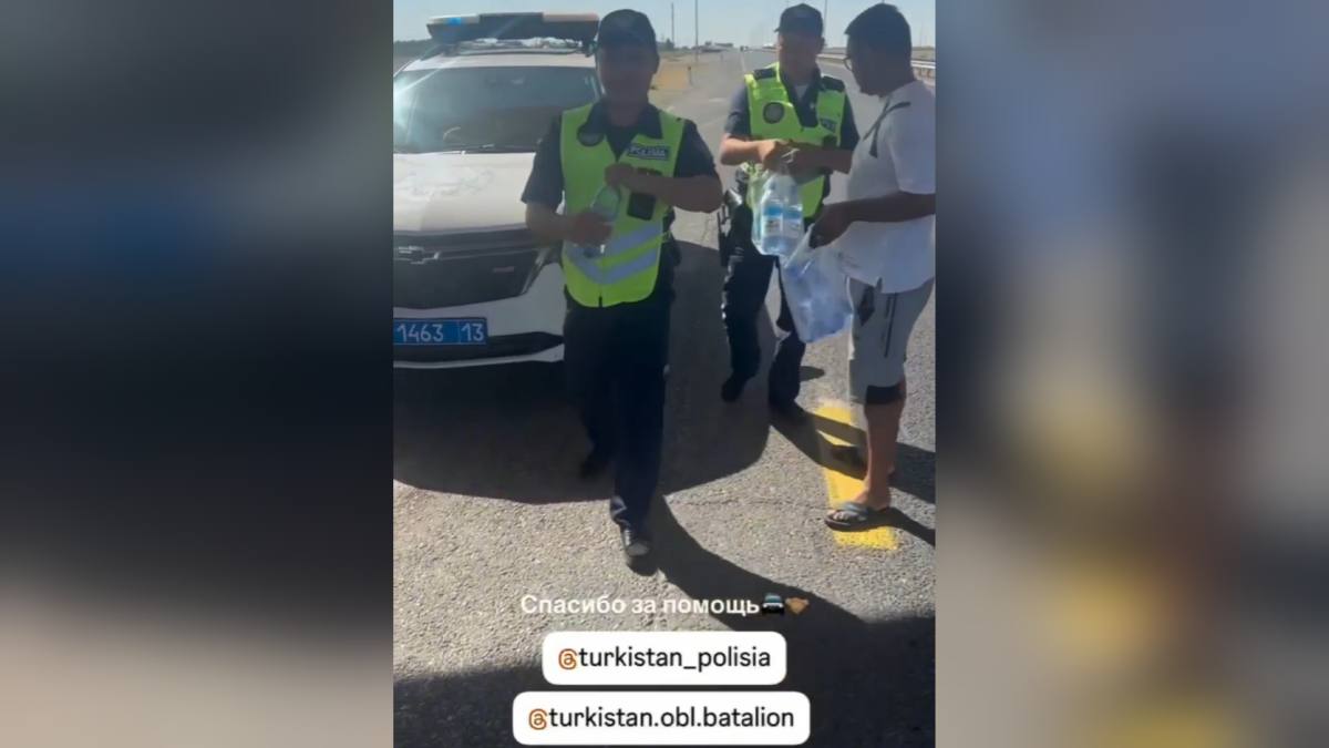 Түркістан облысында полицейлер жолда қалып қойған саяхатшыларға көмектесті