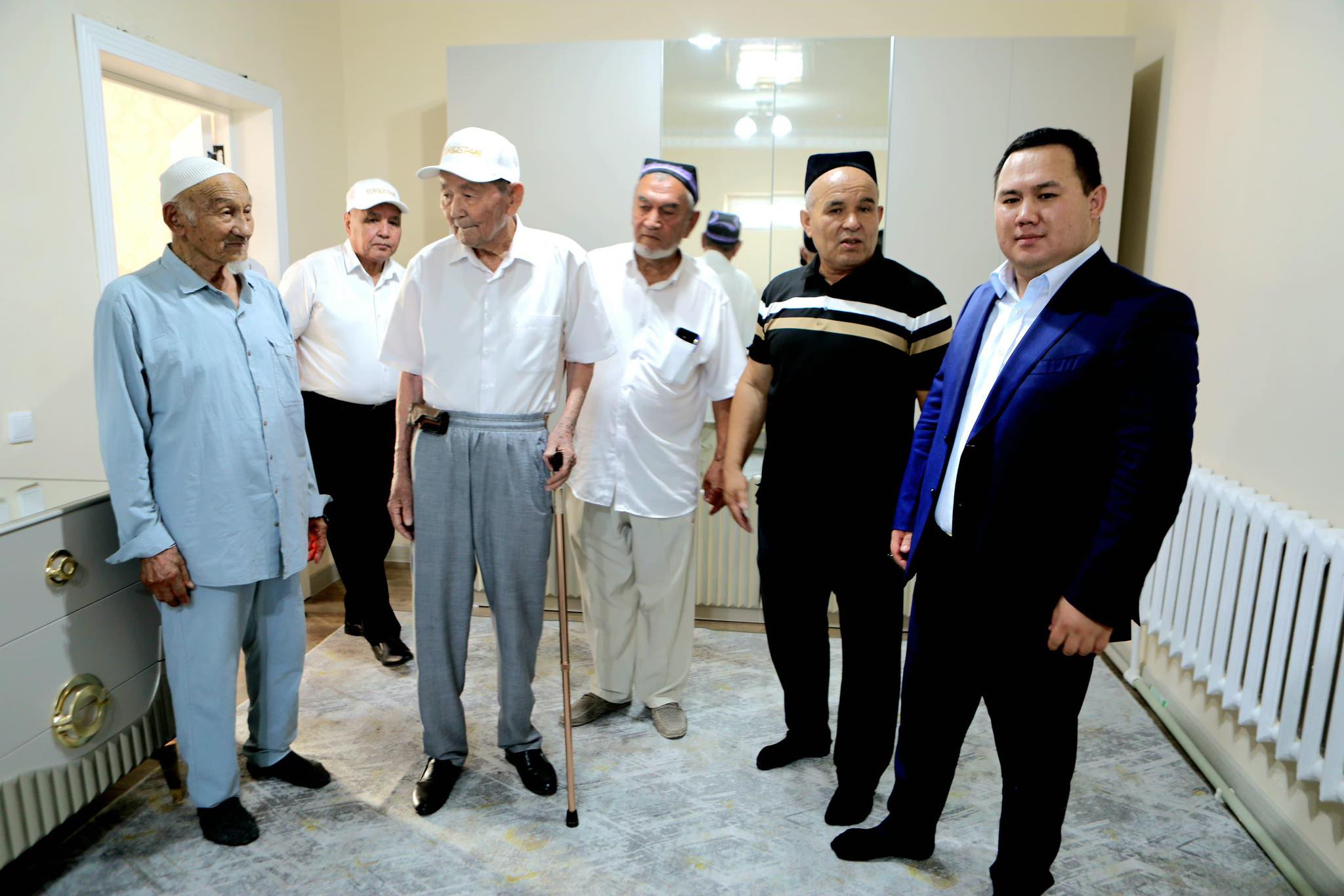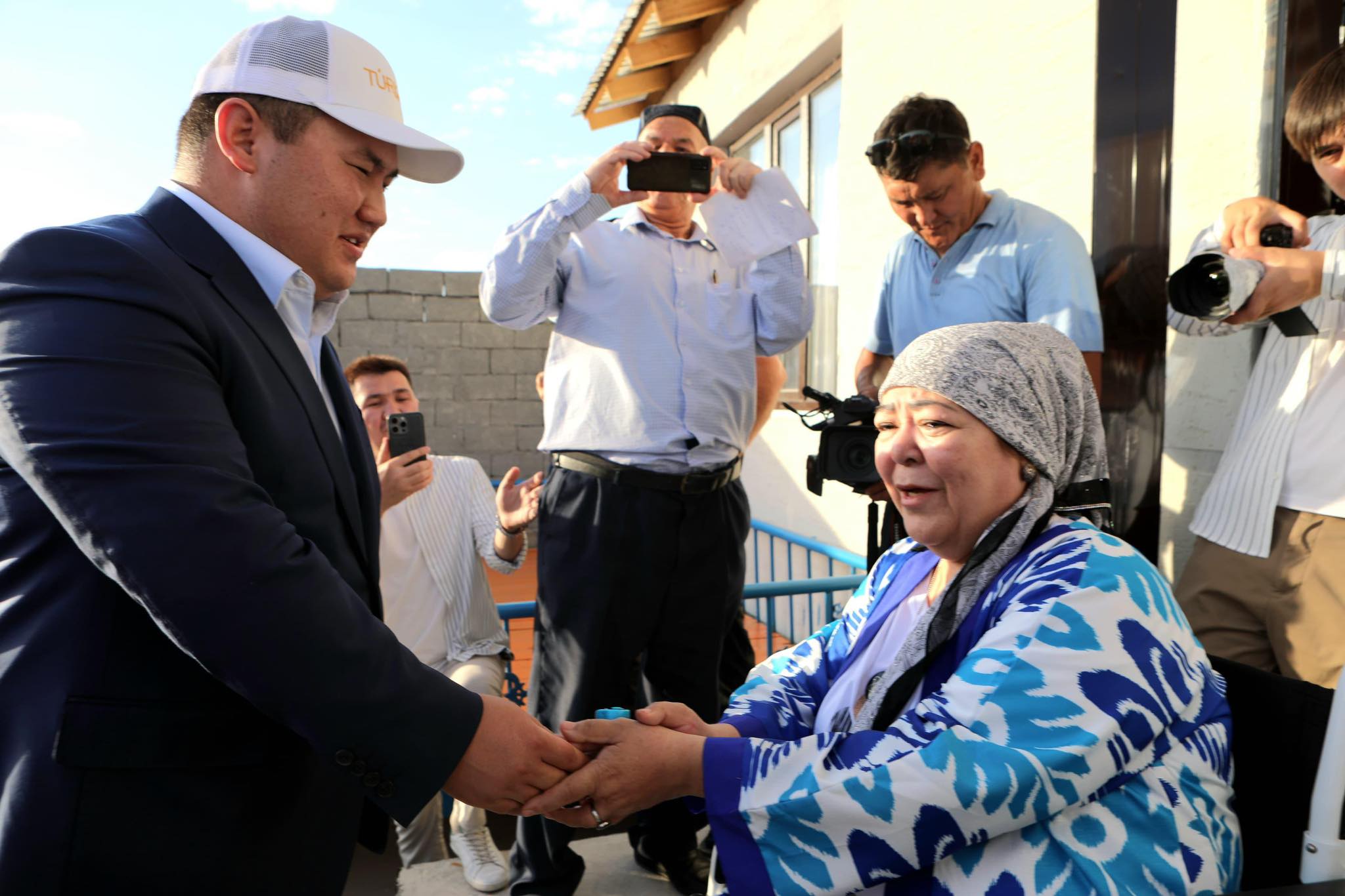 Мүмкіндігі шектеулі жандардың қуанышына ортақтасқан Түркістан қаласының әкімі Әзімбек Пазылбекұлы мен Түркістан облыстық ақсақалдар алқасының төрағасы Жарылқасын Әзіретбергенұлы арнайы сый-сияпатымен жаңа баспананың кілтін табыстады.