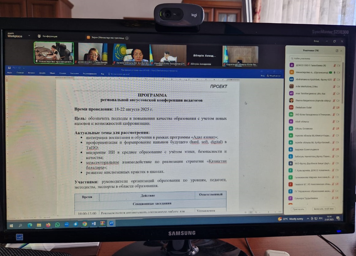 Кеңеске қатысушыларға ағымдағы жылдың 18-22 тамызында өткізілетін педагогтердің өңірлік тамыз конференциясын өткізу бойынша түсініктемелер берілді. Конференцияның мақсаты – цифрландырудың жаңа сын-қатерлері мен мүмкіндіктерін ескере отырып, білім беру сапасын арттыру тәсілдерін белгілеу. Қарастырылатын өзекті тақырыптар да ұсынылды.