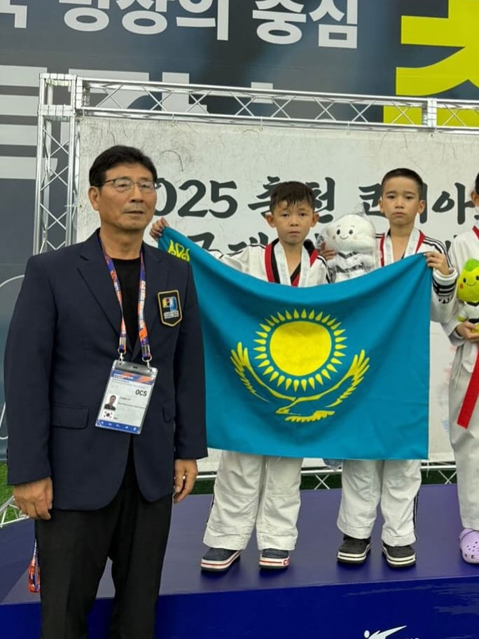 ТҮРКІСТАНДЫҚ ТАЭКВОНДОШЫЛАР КОРЕЙ ЕЛІНДЕ КӨК ТУЫМЫЗДЫ ЖЕЛБІРЕТТІ