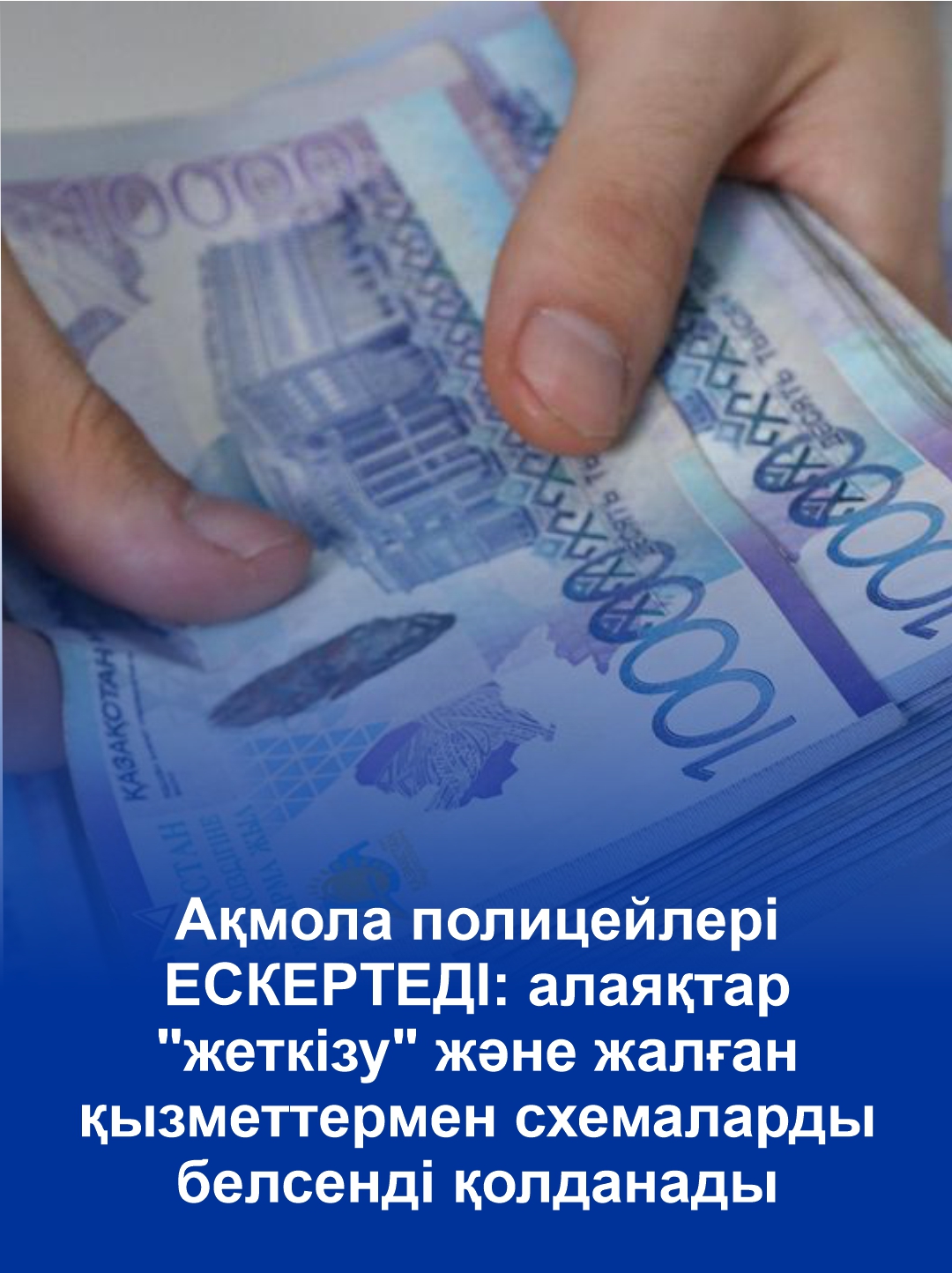 Мәселен, 16 шілдеде Қосшы қаласының полиция бөліміне құрылыс кәсіпорындарының бірінің өкілінен алаяқтық фактісі туралы өтініш келіп түсті. Тексеру барысында бейтаныс адам өзін арнайы техниканың қосалқы бөлшектерін жеткізуші ретінде көрсетіп, ынтымақтастықты ұсынып, жеткізуді орындауға уәде бергені анықталды. Оның сөзіне сеніп, өтініш беруші оған 5 миллион теңгеден астам ақшалай қаражат берді. Алайда, қаражат алғаннан кейін, болжамды жеткізуші байланысқа шығуды тоқтатты және уәде етілген тауарлар ешқашан жеткізілмеді.