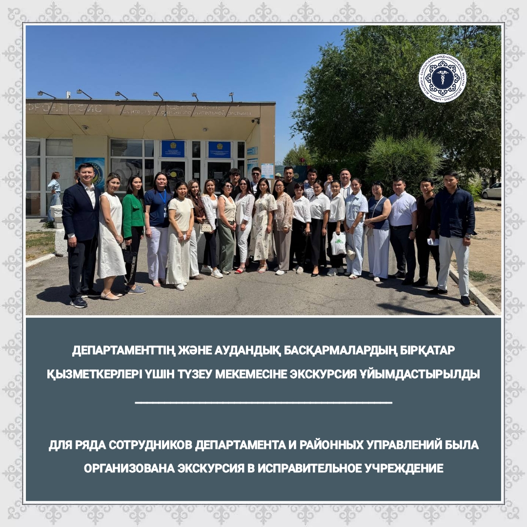 Сыбайлас жемқорлыққа қарсы іс-қимыл жөніндегі іс-шаралар жоспарына сәйкес, Алматы қаласының санитариялық-эпидемиологиялық бақылау департаментінің ішкі қауіпсіздік бөлімімен Департаменттің және аудандық басқармалардың бірқатар қызметкерлері үшін түзеу мекемесіне экскурсия ұйымдастырылды.