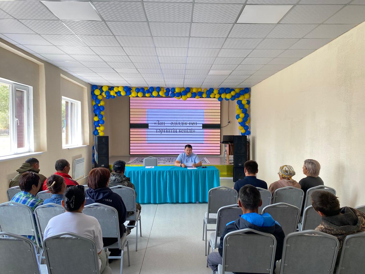 «Заң – әділдік пен тәртіптің кепілі» атты іс-шара аясында Томар ауылдық округінің әкімі Н.Р. Жағыпаровтың қатысуымен ауыл тұрғындарымен кездесу жиыны өтті. Жиын барысында құқықтық мәдениетті арттыру, заң талаптарын сақтау, құқықбұзушылықтың алдын алу, сондай-ақ қоғамдық тәртіп пен тұрғындар қауіпсіздігін қамтамасыз ету мәселелері талқыланды. Шараның мақсаты – тұрғындардың құқықтық сауаттылығын арттырып, мемлекет пен азамат арасындағы өзара жауапкершілікті нығайту болды.