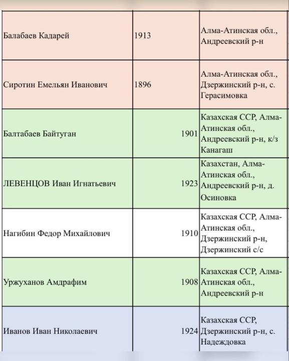 Осыған орай, тізімде көрсетілген ардагерлердің ұрпақтары туралы мәліметіңіз болса, бізбен хабарласуыңызды сұраймыз.