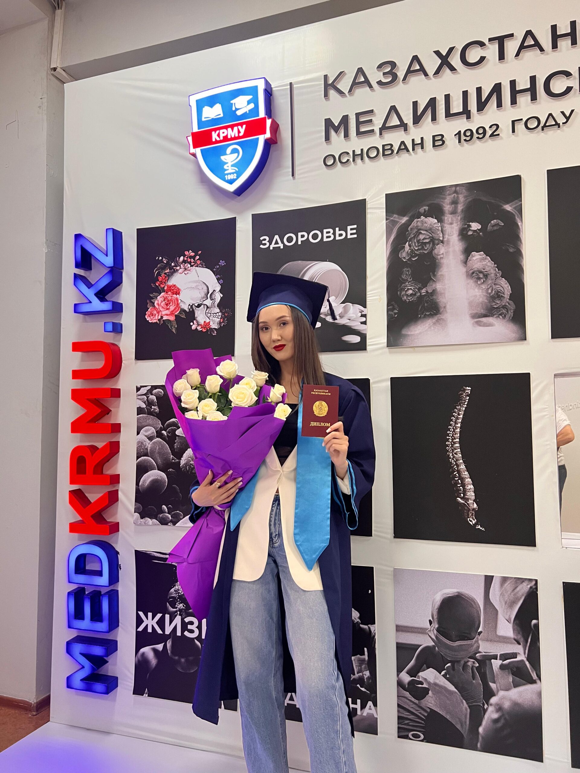 Бакытова Елнура Руслановна 2025 жылғы мемлекеттік білім грантпен Қазақстан-Ресей медициналық университетінің «Қоғамдық денсаулық сақтау» мамандығы бойынша оқудың орташа өлшемді бағасы жоғары үлгеріммен бітірген.