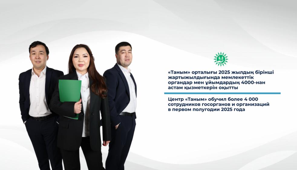 «Азаматтарға арналған үкімет» Мемлекеттік корпорациясының «Таным» корпоративтік оқу орталығы 2025 жылдың бірінші жартыжылдығын қорытындылады. Қаңтар айынан маусымға дейін орталықта 30 мемлекеттік орган мен квазимемлекеттік сектор ұйымдарынаң 4000-нан астам қызметкер оқытылды. Сабақтар Qosyl meet платформасында онлайн форматта өтті.