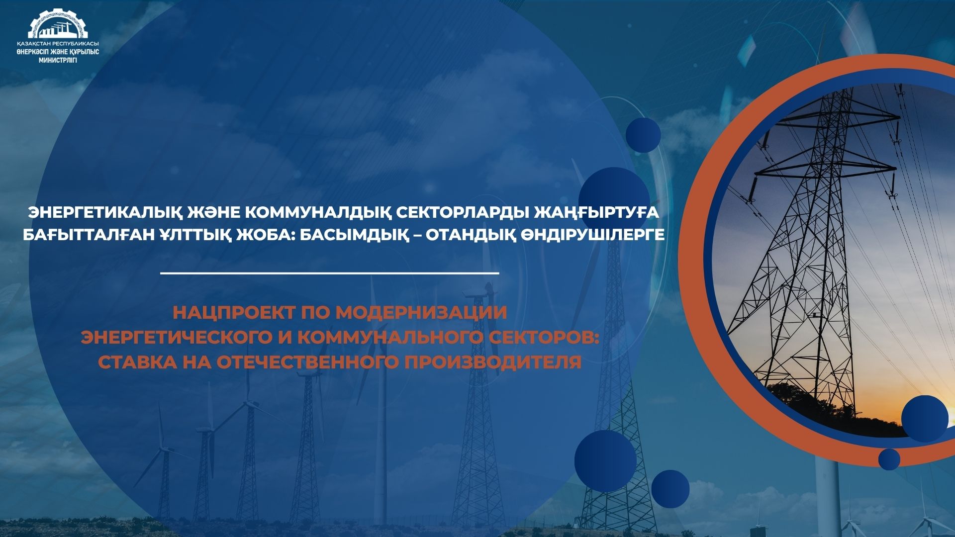 Осыған орай, отандық тауар өндірушілерді энергетика және коммуналдық салаларды жаңғыртуға бағытталған Ұлттық жобаға белсене қатысуға шақырамыз. ҚР Өнеркәсіп және құрылыс министрлігі ынтымақтастыққа ашық әрі жан-жақты қолдау көрсетуге дайын.