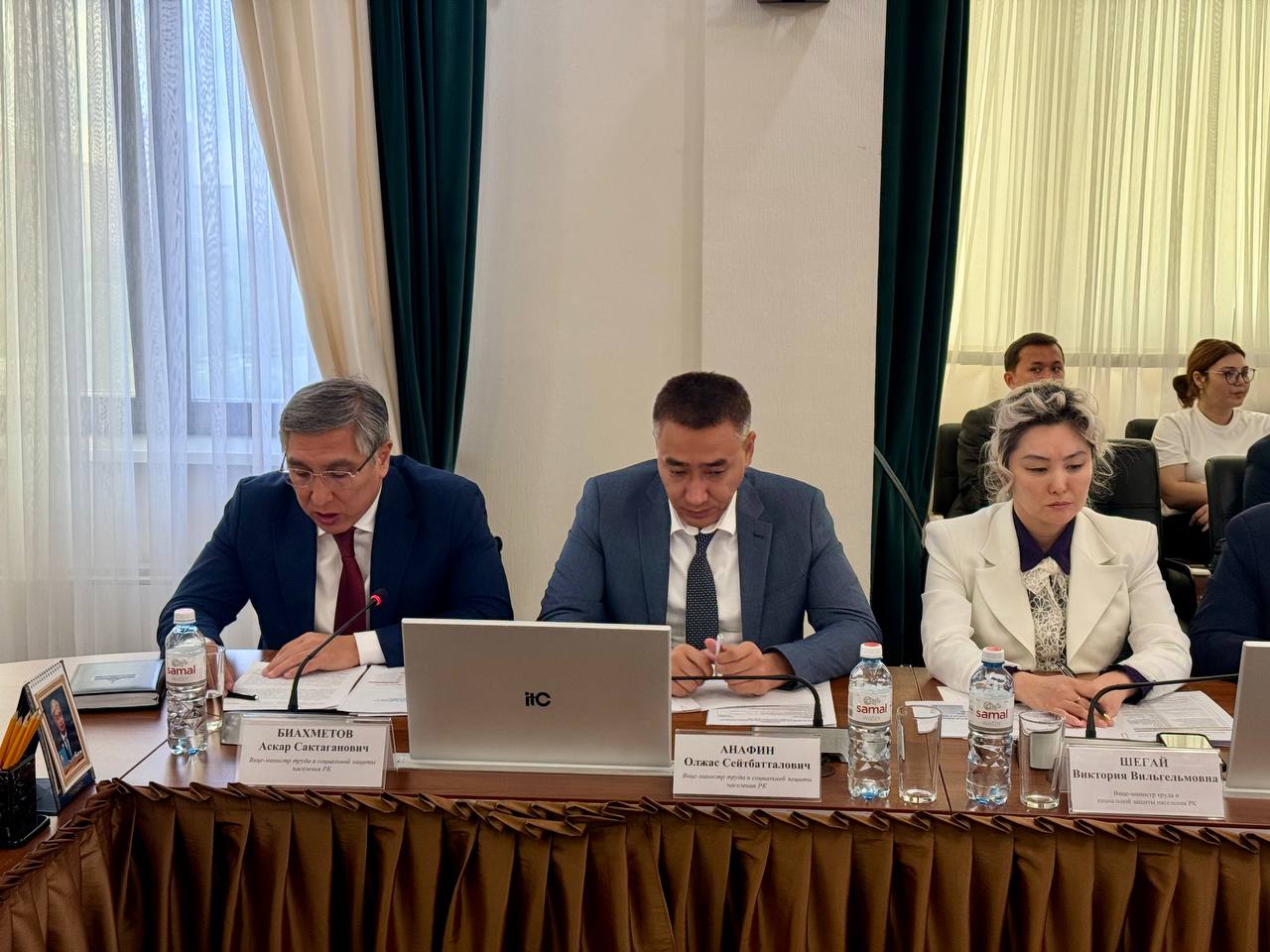 Әрі қарай Еңбек министрлігінің өкілдері ведомство қызметінің негізгі бағыттары туралы толық ақпарат берді.