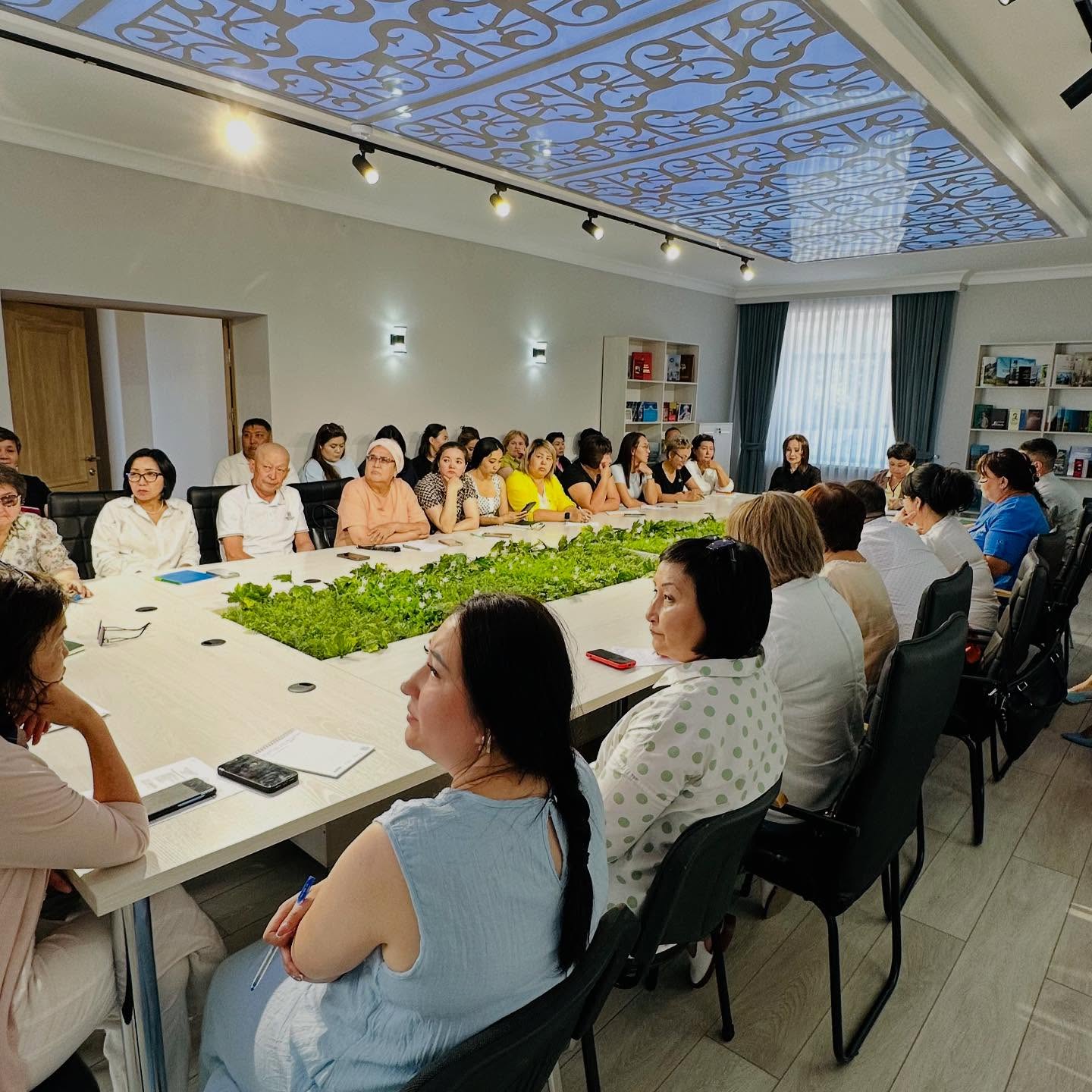 Жиын барысында қатысушылар мемлекеттік тілді меңгерудің тегін мүмкіндіктері туралы да мағлұмат алды.Тіл оқыту курстарының жұмысы таныстырылды.