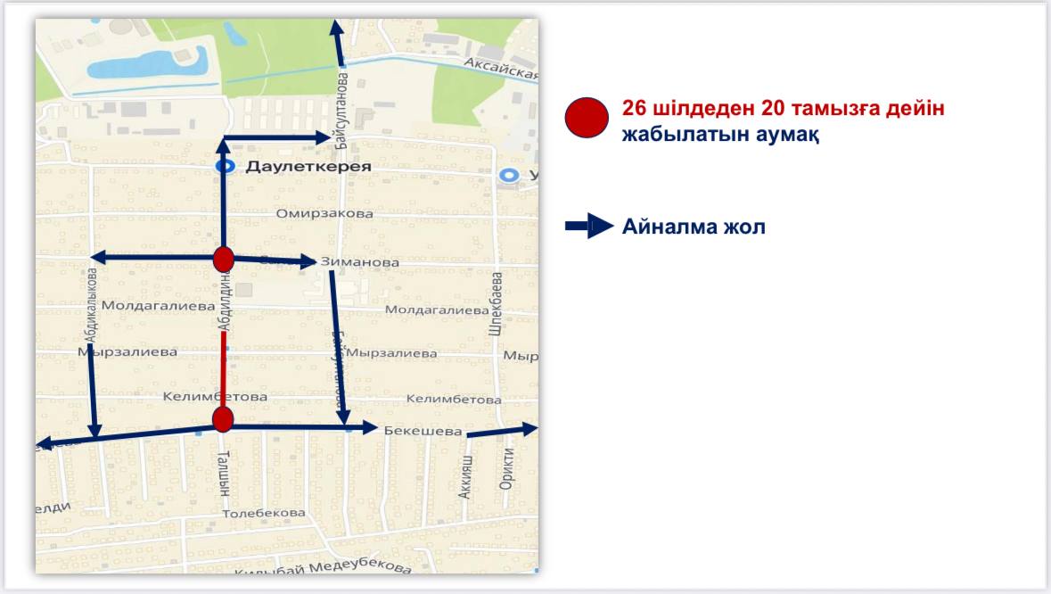 Осыған байланысты 26 шілде мен 20 тамыз аралығында Әбділдин көшесінде жол қозғалысы уакытша шектеледі. Сондай-ақ, автобус бағыттарының қозғалысы уакытша езгереді Уақытша қолайсыздықтар болашақта жайлы өмір сүру үшін қажет.