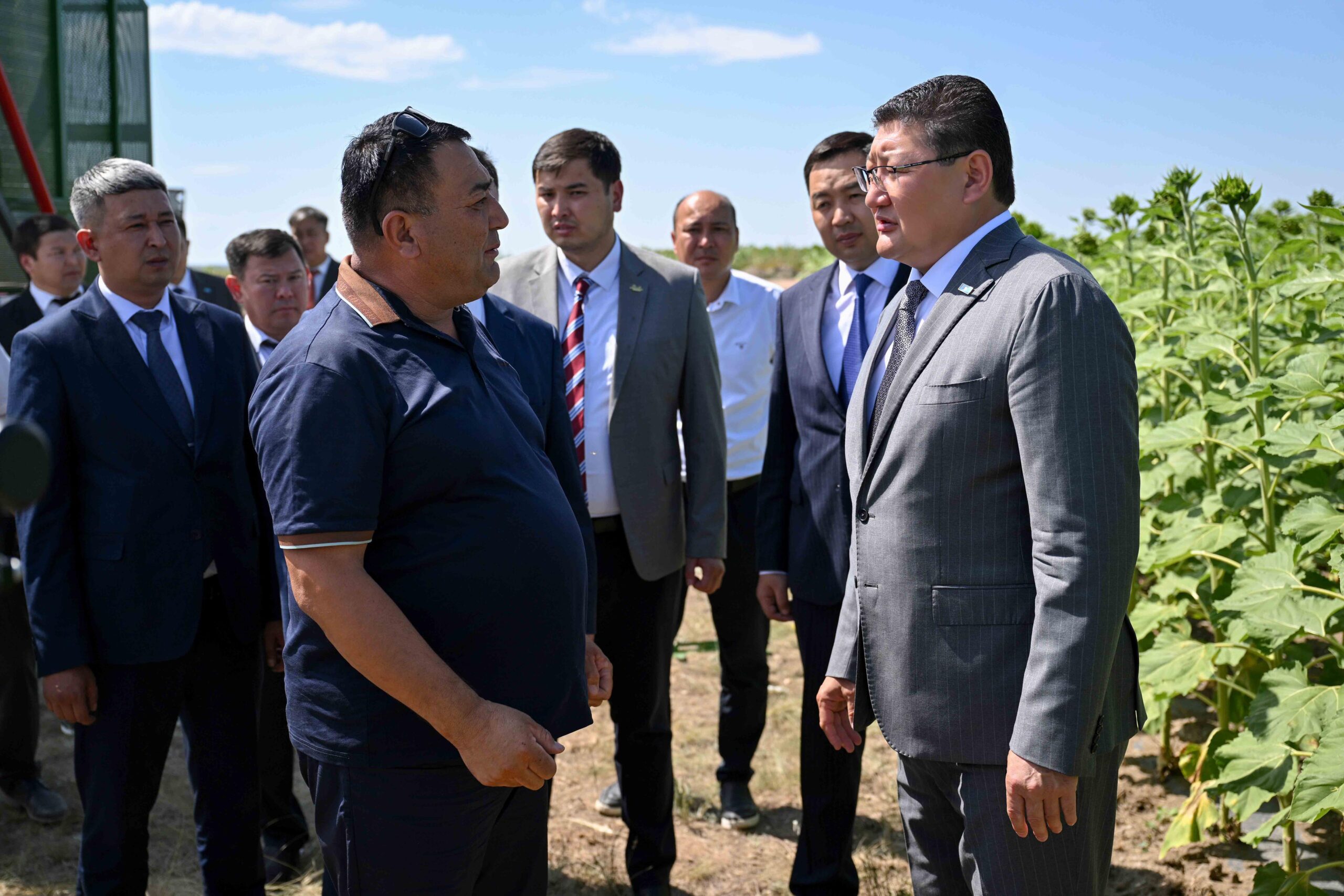 Егіс алқаптарын көрсету барысында шаруашылық иесі аймақ басшысына қосымша жер телімін беру жөнінде өтініш айтты. Оның бүгінде игеріп отырған жер көлемі шамамен 2000 гектар. Болашақта 5000 гектарға дейін ұлғайтпақ.