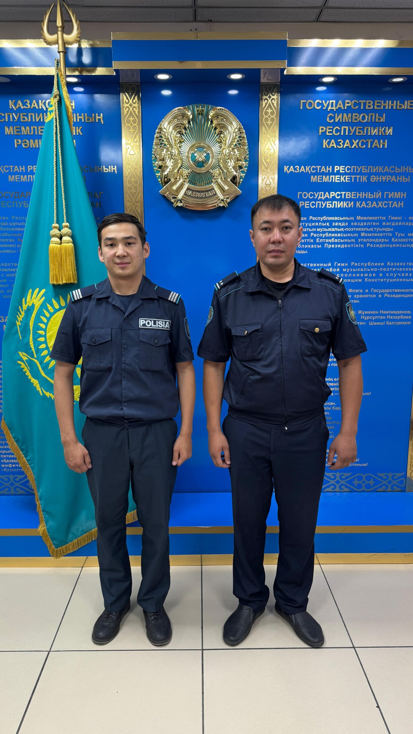 Полиция лейтенанты Олжас Сабыров пен полиция кіші сержанты Даулет Асқарбеков көпқабатты үй тұрғынына жәрдемдесті.