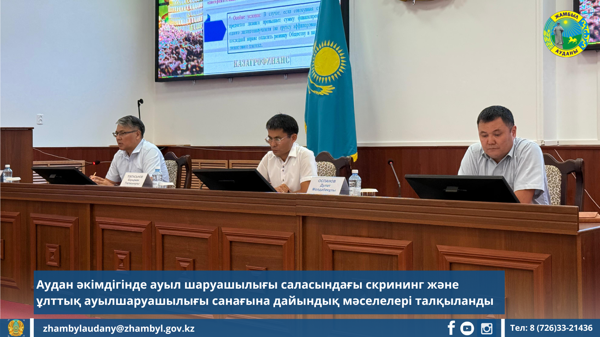2025 жылғы 28 шілдеде аудан әкімдігінде ауыл шаруашылығы саласындағы скрининг негізінде талдамалық ақпарат ұсыну және алдағы ұлттық ауылшаруашылығы санағына дайындық барысы бойынша кеңес өтті.