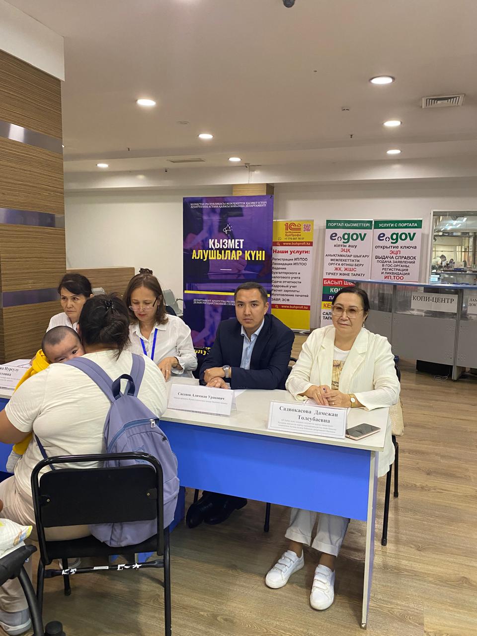 25-го июля 2025 года в “Центре трудовой мобильности” Акимата г. Астаны состоялся “День услугополучателей”, организованный Департаментом Агентства Республики Казахстан по делам государственной службы по г. Астане. От Департамента Комитета регулирования и контроля в сфере социальной защиты населения по городу Астана прием услугополучателей по вопросам установления инвалидности, назначения пенсионных и социальных выплат, о порядке подтверждения трудового стажа осуществляла руководитель департамента Садвокасова Д.Т.