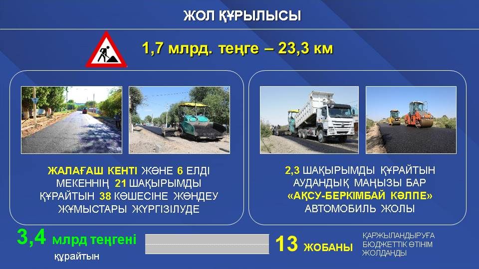 мекендеріндегі 21 шақырымды құрайтын 38 көшесіне жөндеу