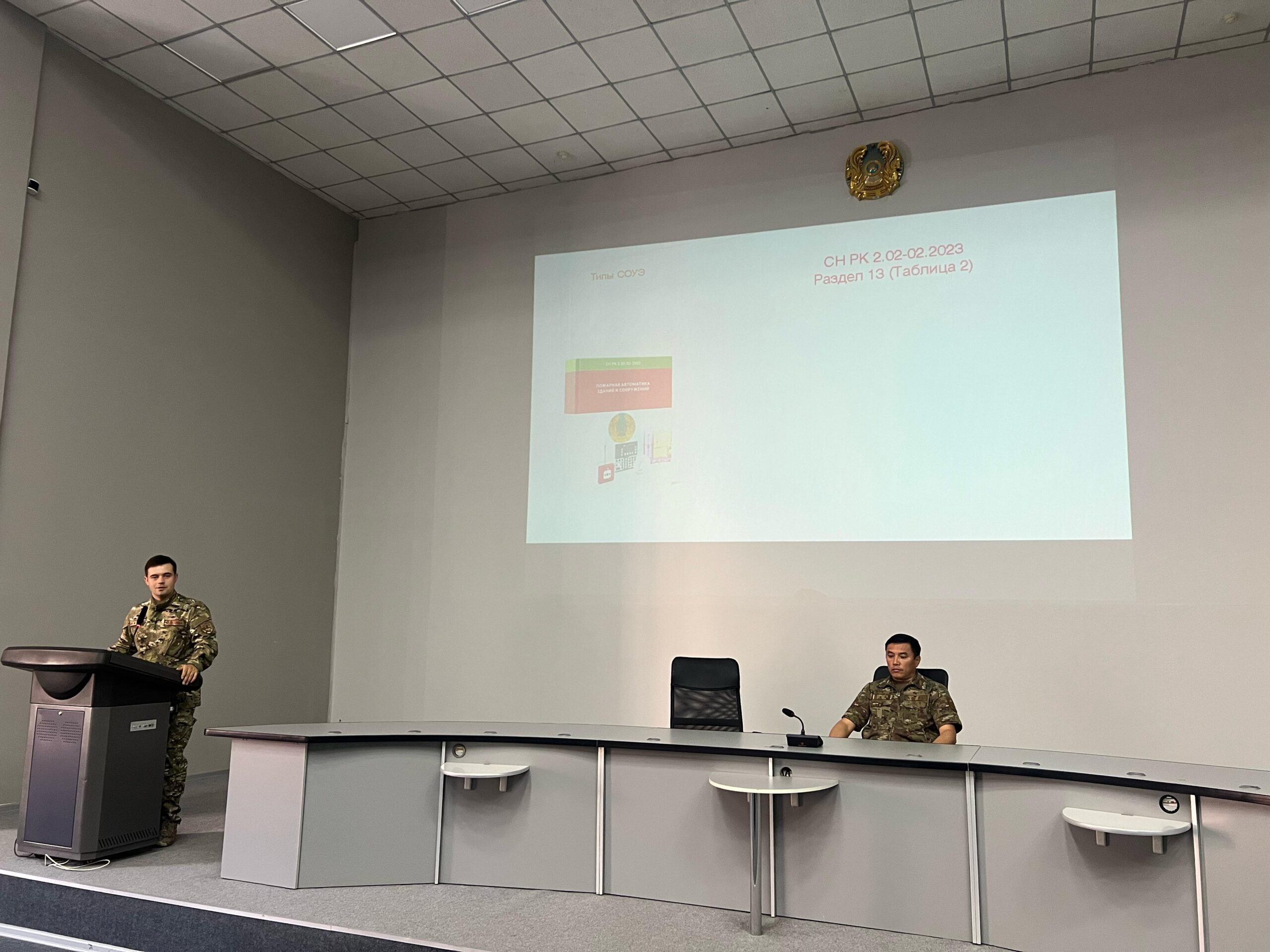Инспекторлардың біліктілігін арттыру шеңберінде өрт қауіпсіздігінің өзекті талаптары, арнайы техникалық шарттарды қолдану тәртібі, сондай-ақ жобалау мен монтаждау кезіндегі жиі кездесетін қателіктер қарастырылды.