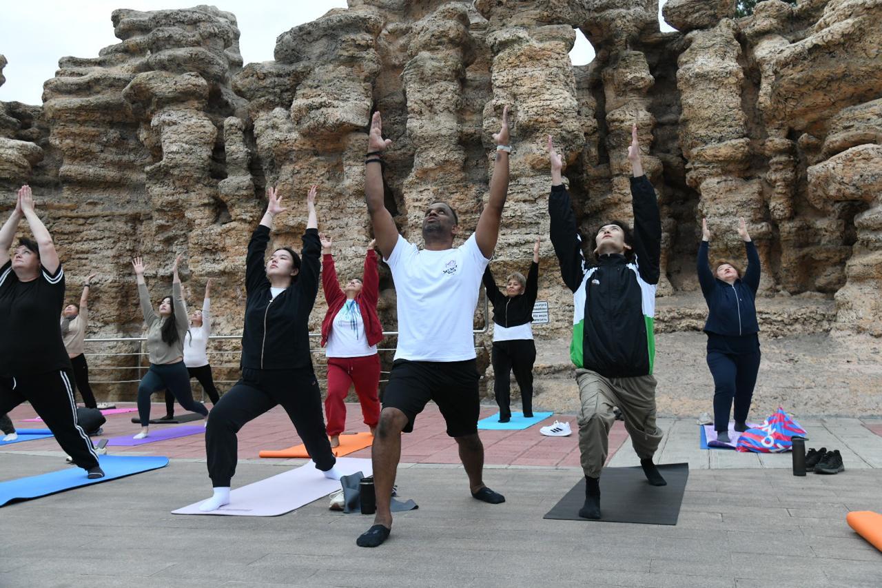 Йога жаттығуларын білікті мамандар, оның ішінде Үндістаннан келген қонақтар жүргізеді. Жаттығулар кешенінің мақсаты – аз қозғалатын адамдардың денсаулығын жақсарту және төзімділігін арттыру. Қала тұрғындарына арналған кілемшелер тегін беріледі.