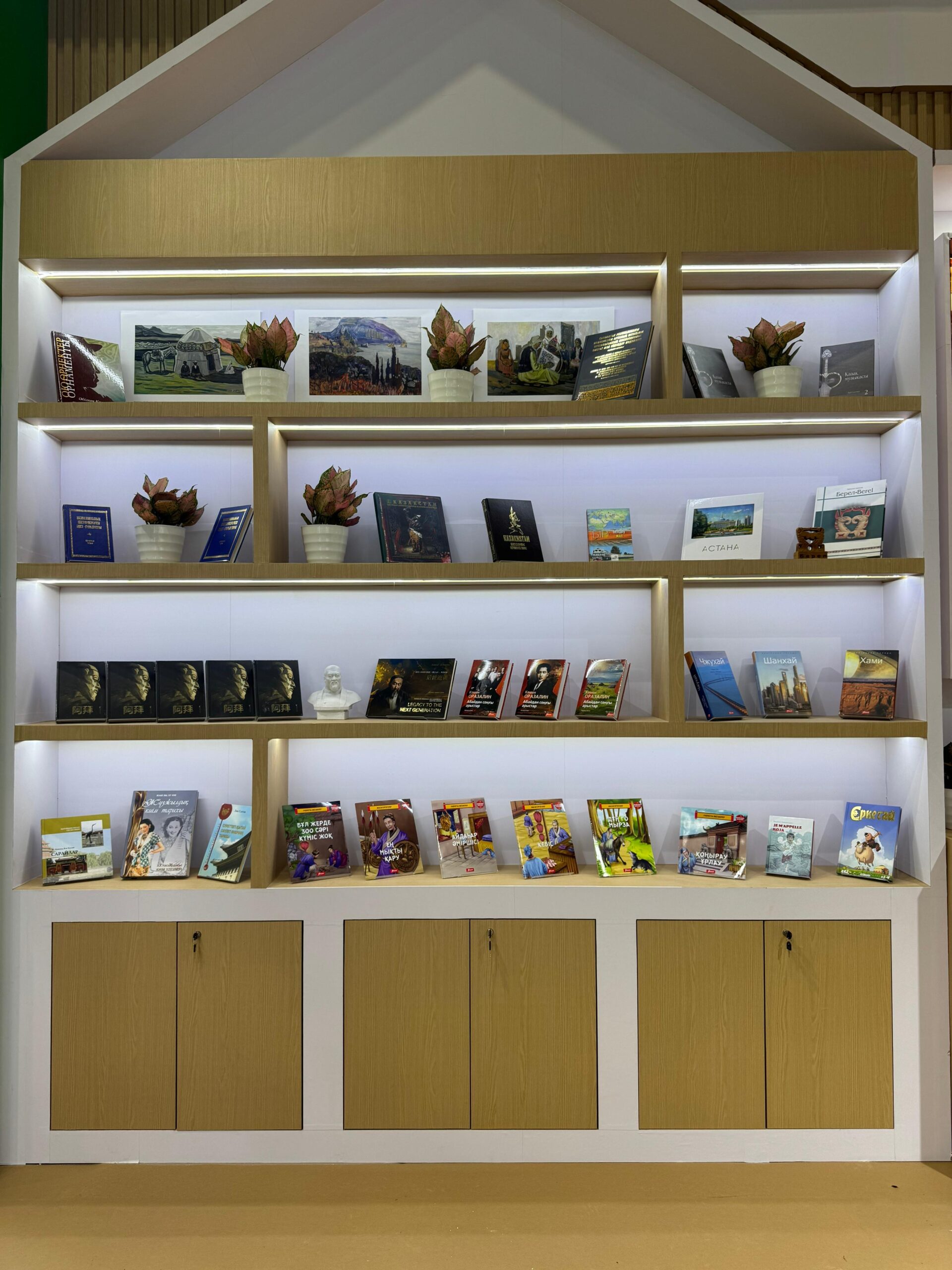 Павильонда қазақстандық жетекші баспалардың басылымдары, қытай әдеби шығармаларының қазақ тіліне және қазақстандық авторлардың шығармаларының қытай тіліне аудармалары, сондай-ақ Қазақстанның сауда-экономикалық және туристік әлеуеті туралы ақпараттық материалдар ұсынылды.