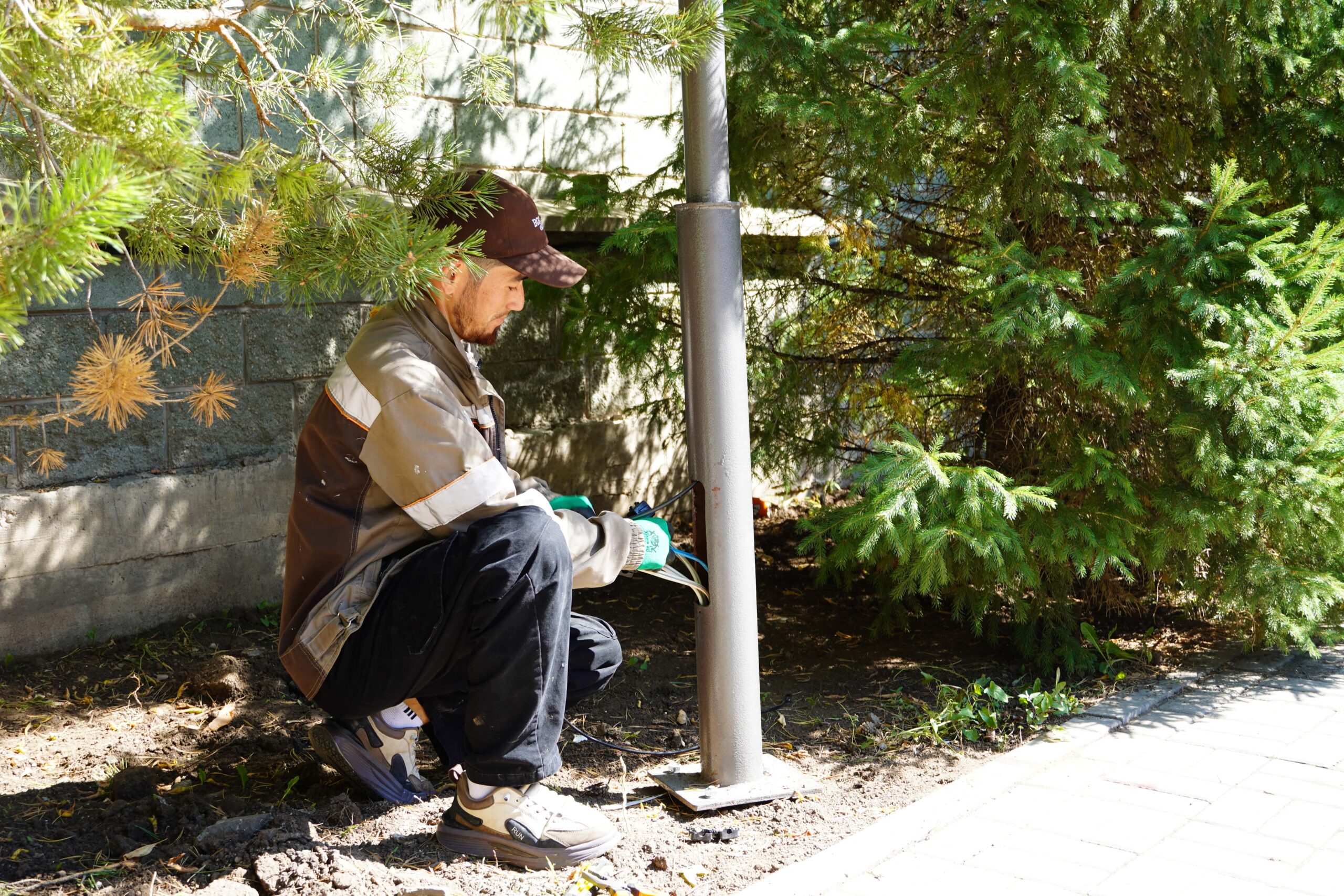 Қазір «Альбион» тұрғын үй кешенінің ауласында 50-ге жуық бақтық жарық бағанасы орнатылуда — кешкі уақытта аула жарық әрі қауіпсіз болады.