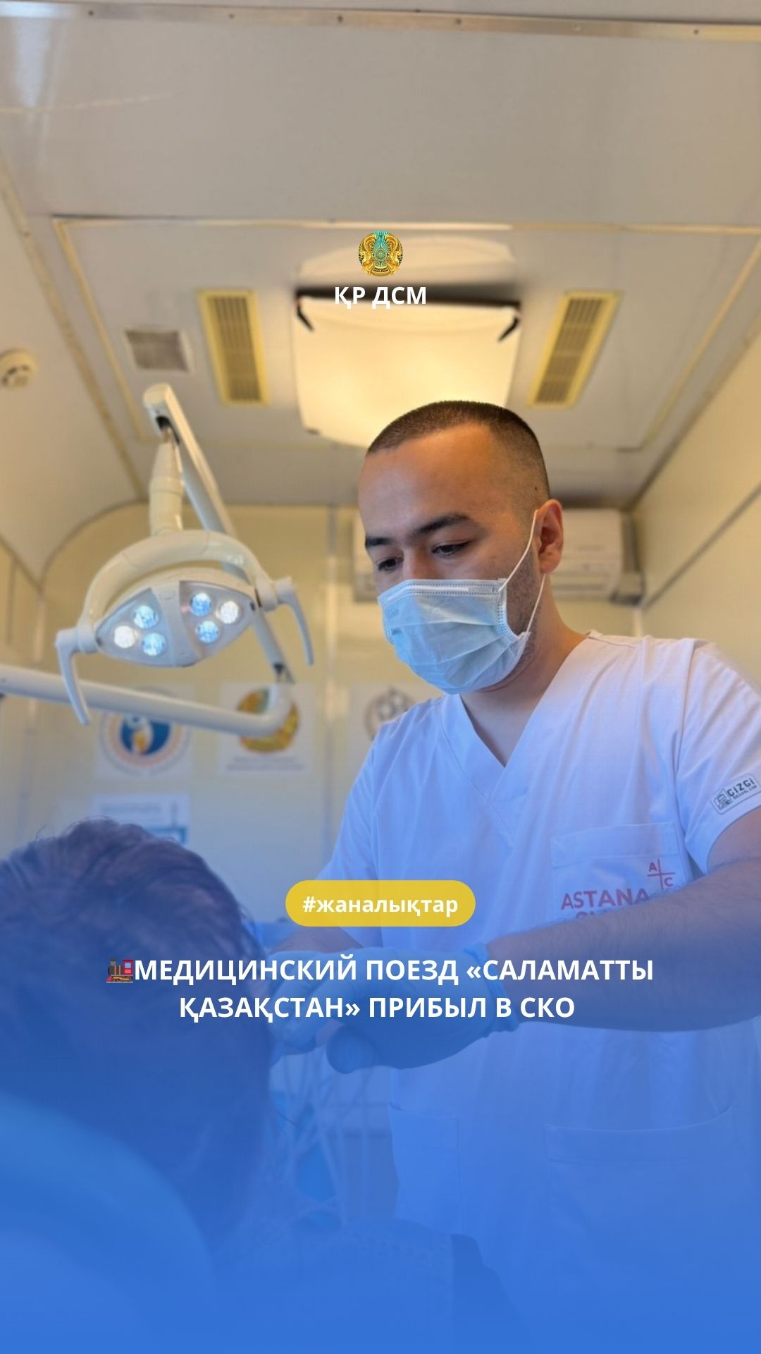 7 тамызда «Саламатты Қазақстан» медициналық пойызы Солтүстік Қазақстан облысына келді. Мұнда екі апта бойы шалғайдағы елді мекендердің тұрғындарына тегін көмек көрсетіледі.