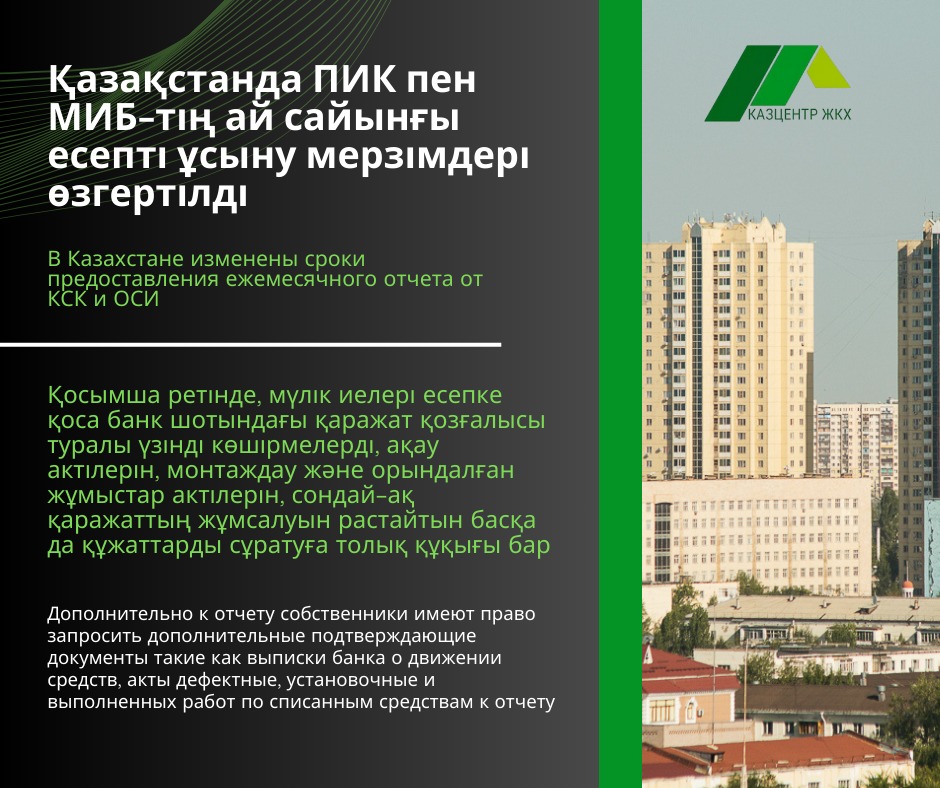 Сонымен қатар, Заңда кондоминиум нысанын басқару бойынша жылдық есепті ұсыну тәртібі де бекітілді. Жылдық есептер үй кеңесінде қаралып, мүлік иелерінің жалпы жиналысында талқыланып, есепті кезеңнен кейінгі жылдың 1 сәуірге дейін қабылдануы тиіс.