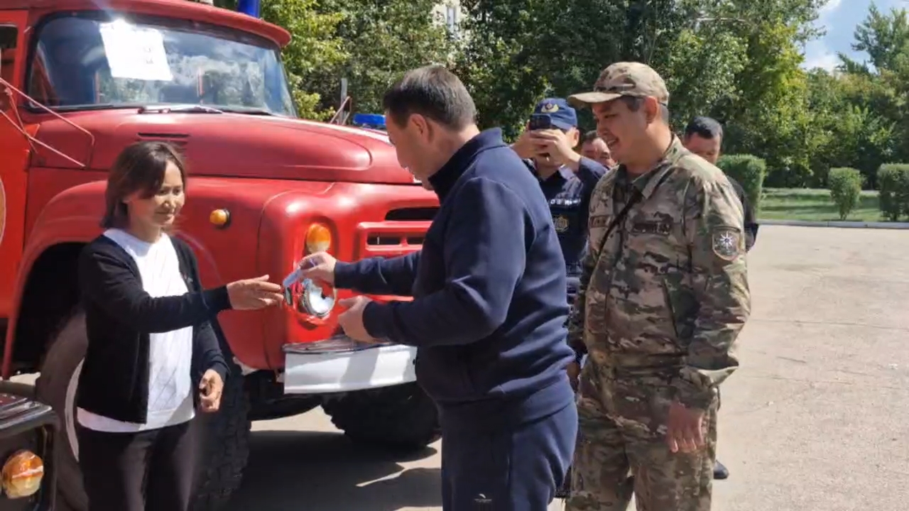 Ақмола облысының Целиноград ауданында өрт сөндіру көліктерінің кілттерін табыстау салтанатты рәсімі өтті.