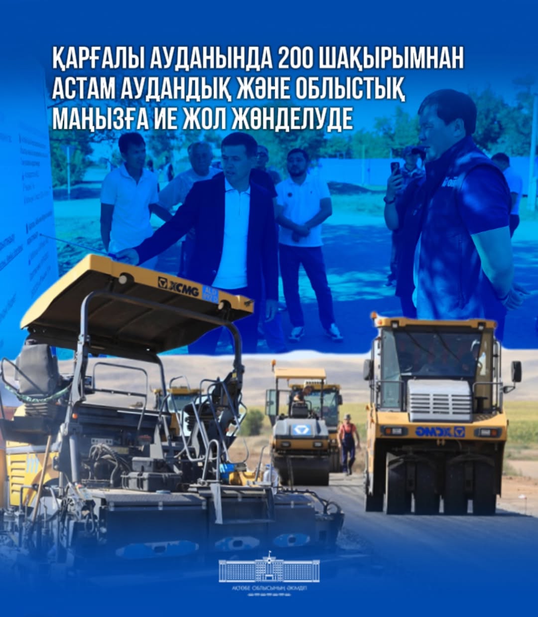 Өңір басшысы Асхат Шахаровтың Қарғалы ауданына жұмыс сапары басталды. Сапар аясында аудан елді мекендерінде жүзеге асырылып жатқан жол жөндеу және инфрақұрылымдық жұмыстарды қарап шықты.