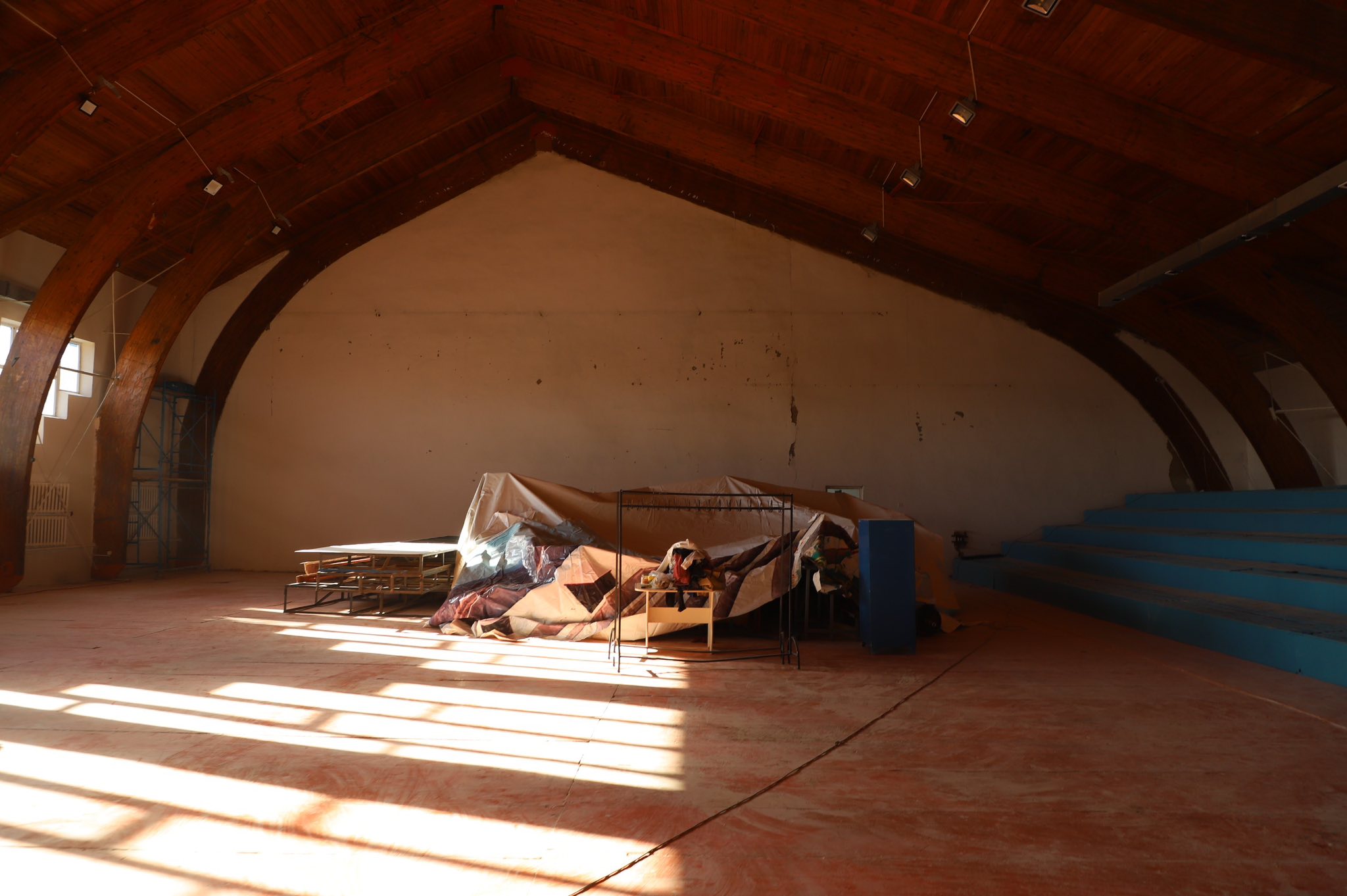Сапар аудандық дене шынықтыру-сауықтыру кешенінен басталды. Қазіргі уақытта мұнда сыртқы абаттандыру жұмыстары толығымен аяқталып, бетон жолақ құйылып, тас төселген. Ішкі әрлеу бағытында – ішкі есіктер орнатылып, электр желілерін тарту жұмыстары аяқталуға жақын. Дзюдо залының еденіне спорттық линолеум төсеу жоспарлануда. Алдағы уақытта 320 орындық көрермен орны жаңартылып, толық жаңадан ауыстырылатын болады.