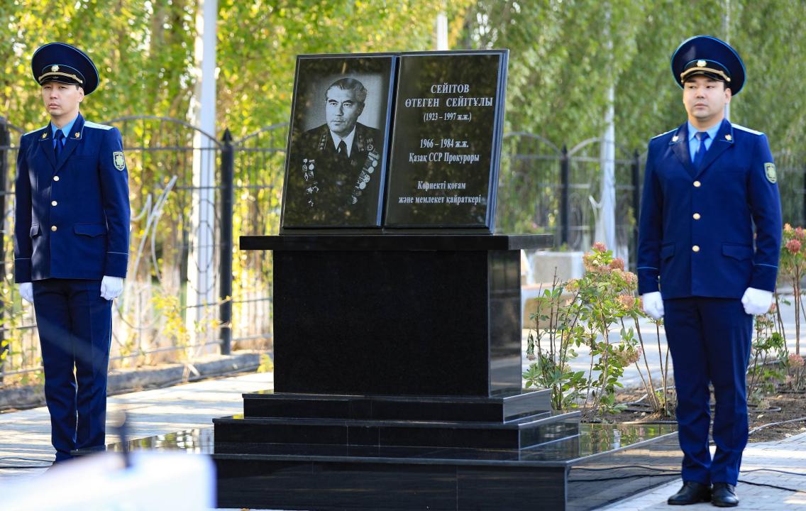 Аллеяда заңдылық пен құқықтық тәртіпті нығайтуға, жас мамандарды даярлауға және ел прокуратурасының дамуына елеулі үлес қосқан, Өтеген Сейітұлының құрметіне арналған мемориалдық тақта орнатылды.