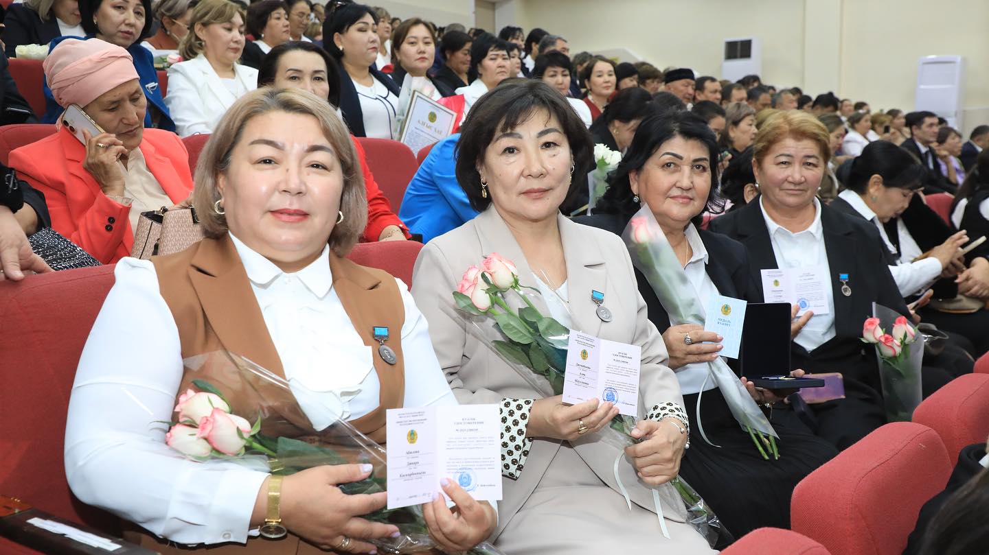 Көрермен ықыласын түлеткен әсерлі қойылымнан кейін құттықтау сөз кезегі қала әкімі Қайсар Зәкірұлына берілді. Әкім ұстаздарға жүрекжарды ықыласын білдіріп, білім беру саласына сүбелі үлес қосқан бірқатар педагогтарға ҚР Оқу-ағарту министрлігінің, облыс әкімінің және қала әкімінің марапаттарын салтанатты түрде табыстады.