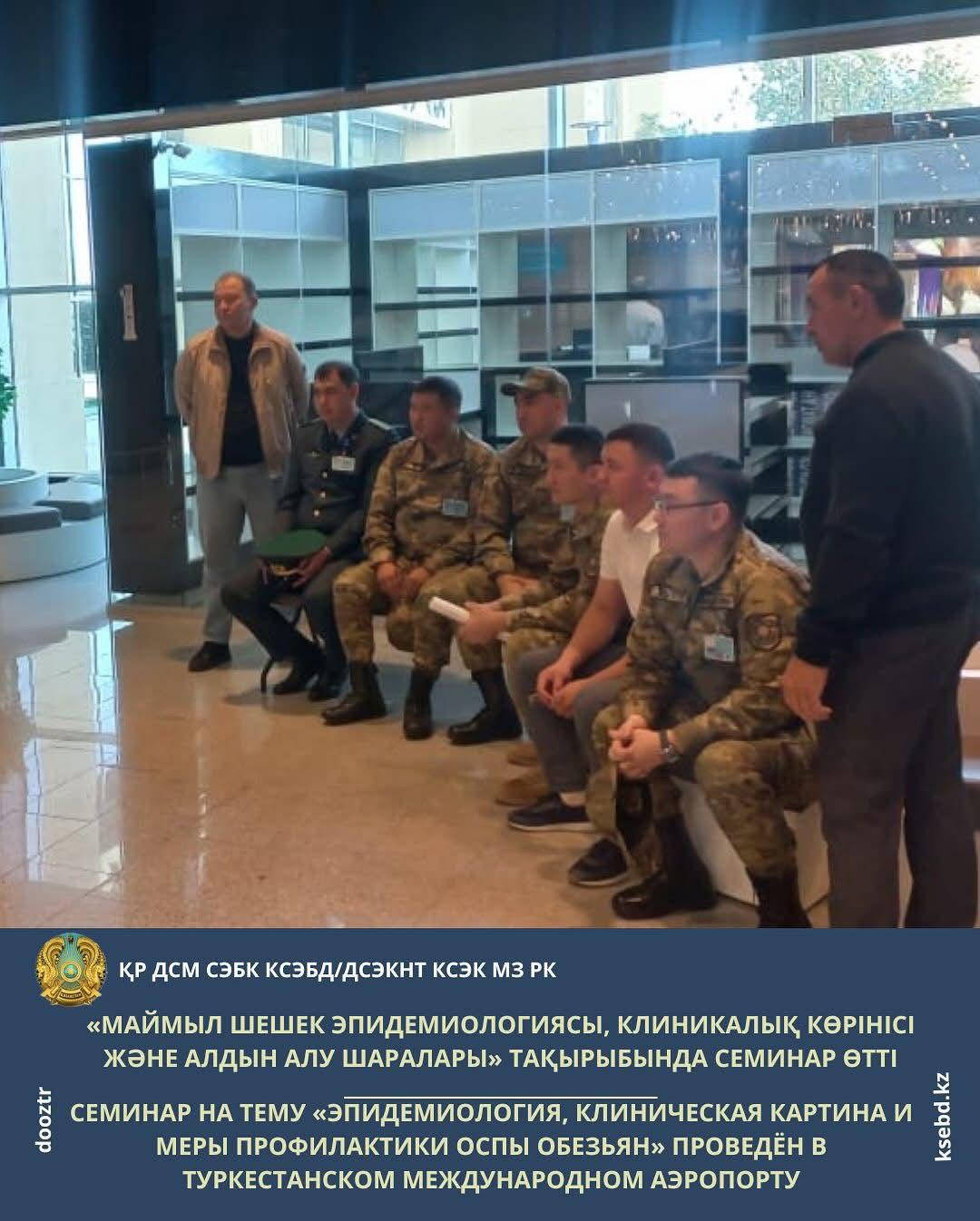 2025 жылғы 15 қазанда Түркістан халықаралық әуежайында санитариялық-карантиндік бақылау мамандары маймыл шешегінің эпидемиологиясы мен алдын алу шаралары бойынша семинар өткізді.