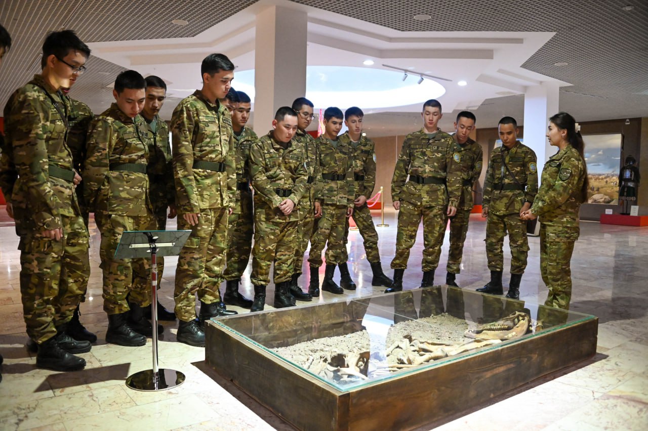 – Әскери-тарихи музейге экскурсия барысында еліміздің ерлікке толы тарихынан мол мәлімет алдық. Біз тас дәуірінен бүгінгі күнге дейінгі қазақ жауынгерлерінің оқ-дәрілерін, қару-жарақтарын, картиналар мен тарихи құжаттарды, фотосуреттерді көрдік. Батыр бабаларымыз бен қазіргі әскерімізге деген мақтаныш сезімі пайда болды. Мектепте «Жас сарбаз» әскери-патриоттық клубына қатысқан едім. Қазір кафедрада әрбір Отан қорғаушыға қажет білім мен дағдыларды үйреніп жатырмын, – деді әскери кафедраның бірінші курс студенті Олжас Самархан.