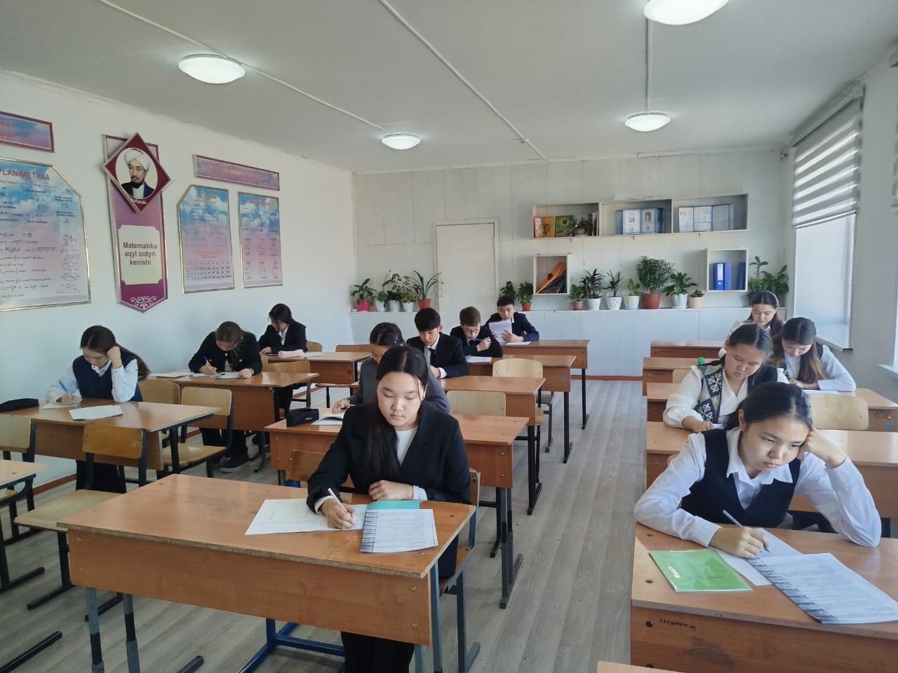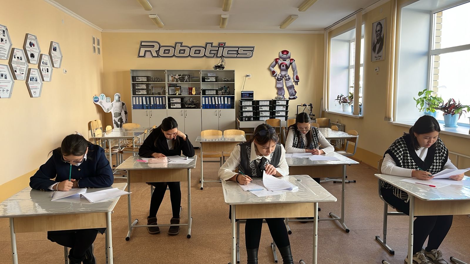 Қатысушылар 30 сұрақтан тұратын тест тапсырмасын 60 минут ішінде орындады. Үздік нәтиже көрсеткен 17 оқушы келесі кезеңге жолдама алды. Мектепішілік кезеңге барлығы: 253 оқушы қатысты.