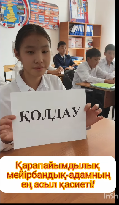 Мақсаты: оқушылар арасындағы қорлау, мазақтау, намысқа тию жағдайларының алдын алу, сынып ұжымын сыйластыққа, бір-біріне қолдау көрсете білуге тәрбиелеу.