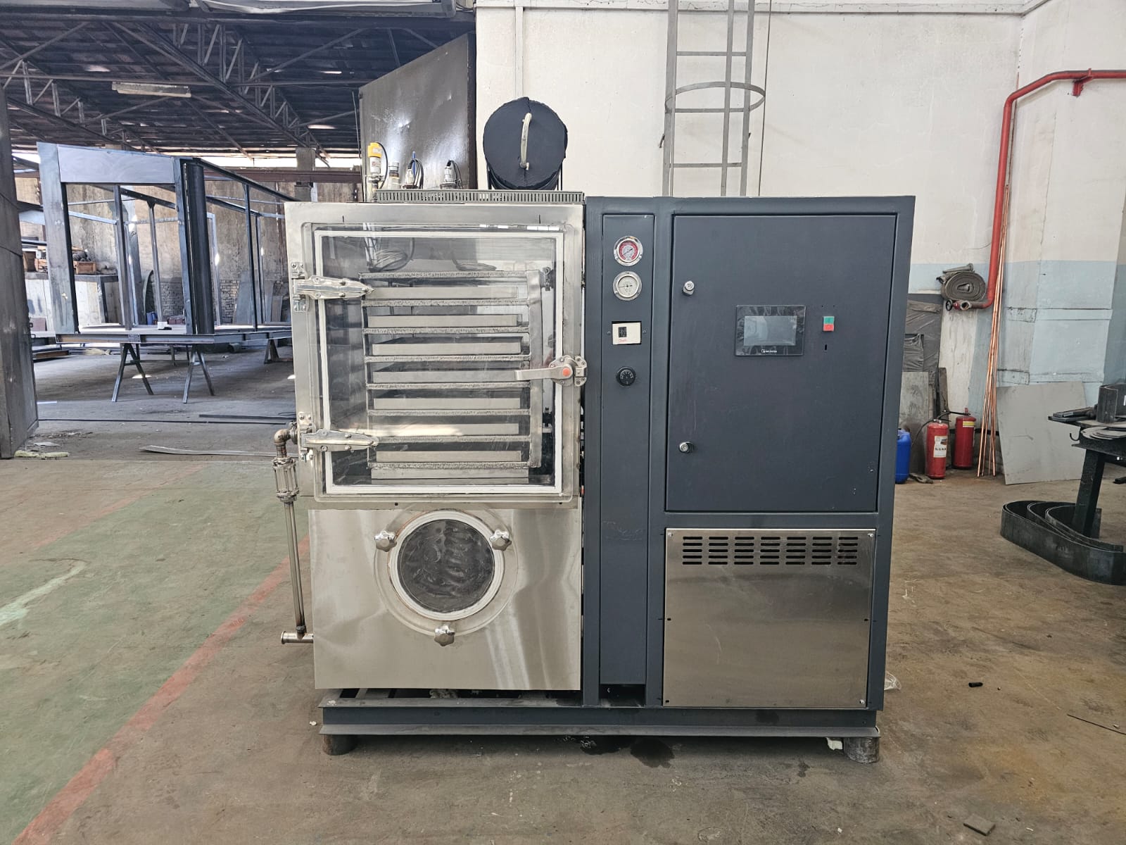 Академик У.А.Жолдасбеков атындағы Механика және машинатану институтында FD-4.1 вакуум-сублимациялық кептіру кешенінің тәжірибелік үлгісі көрсетілді. Бұл үлгі BR21881957 «Бие және түйе сүтін терең өңдеудің технологиясы мен вакуум-сублимациялық кептіру жабдығын әзірлеу» атты ғылыми жоба аясында әзірленді.