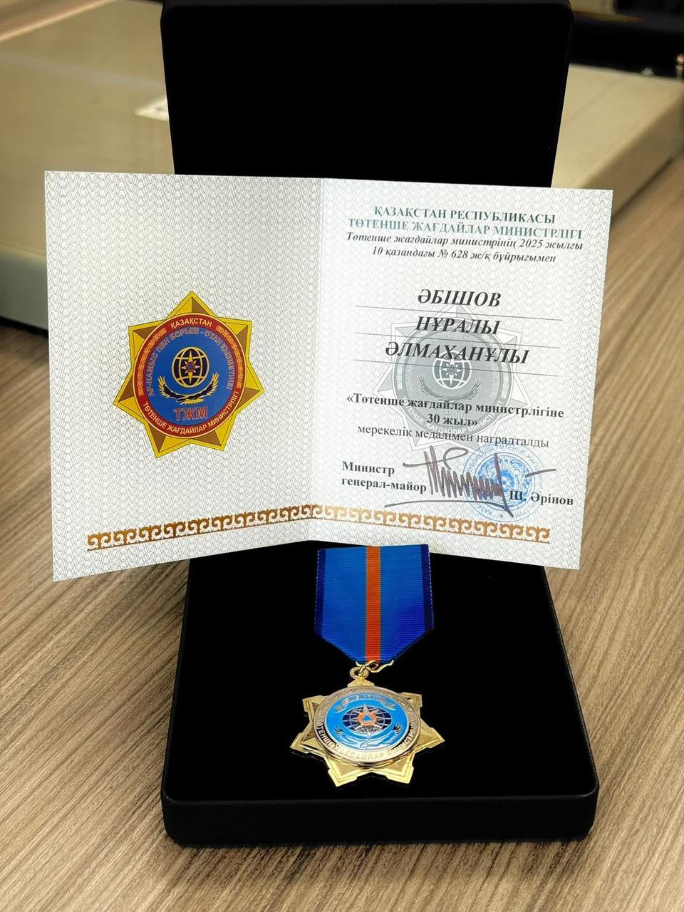 Мерекелік медальді Түркістан облыстық Төтенше жағдайлар департаментінің бастығы, полковник Асқар Төлешов арнайы тапсырды.