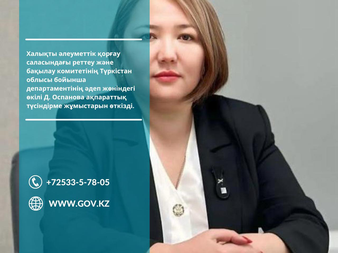 Халықты әлеуметтік қорғау саласындағы реттеу және бақылау комитетінің Түркістан облысы бойынша департаментінің әдеп өкілі Д. Оспанова Президентіміздің жолдауына байланысты ақпараттық түсіндірме жұмысын жүргізді.